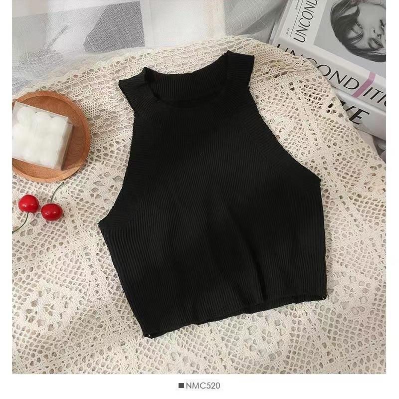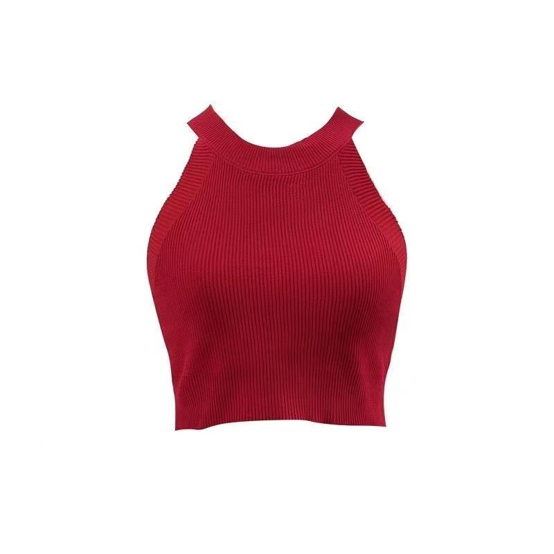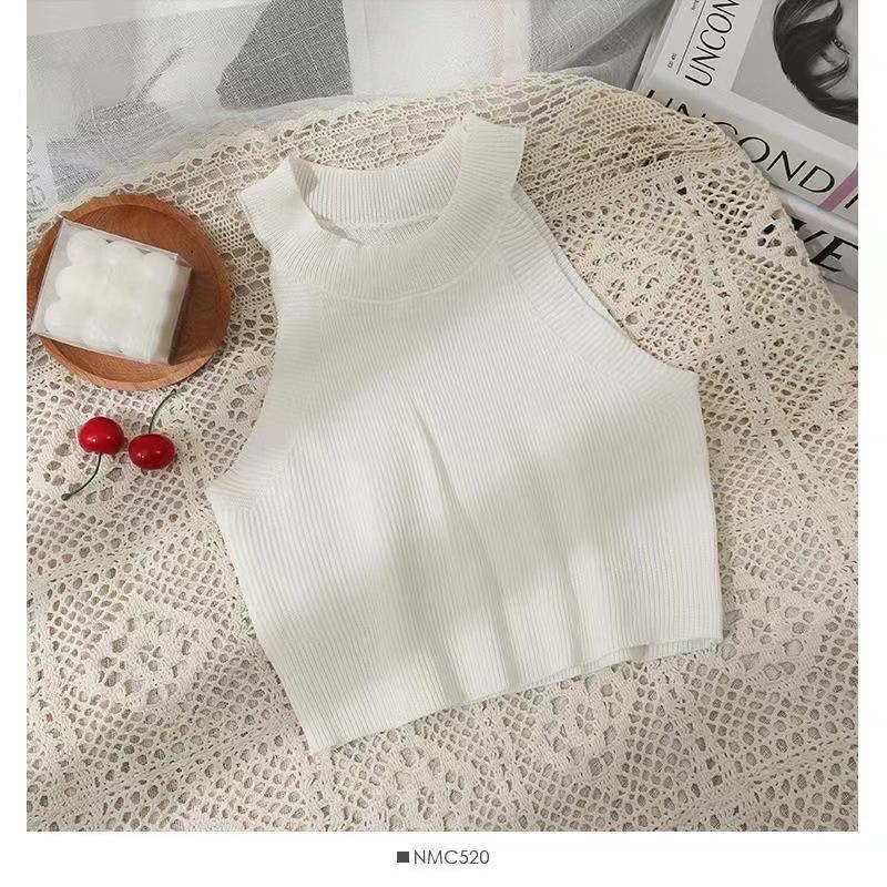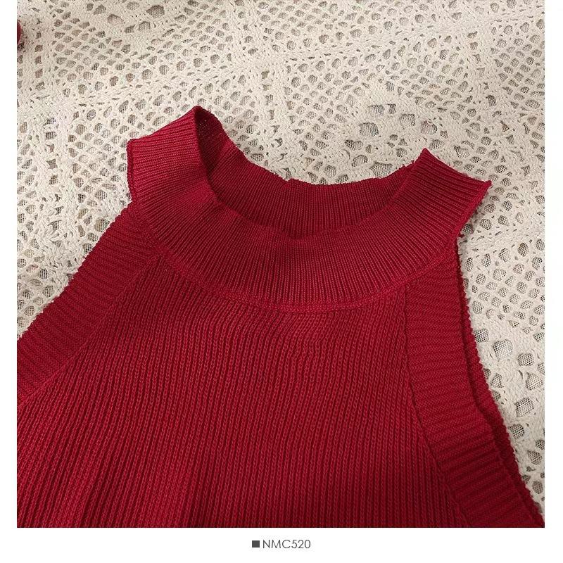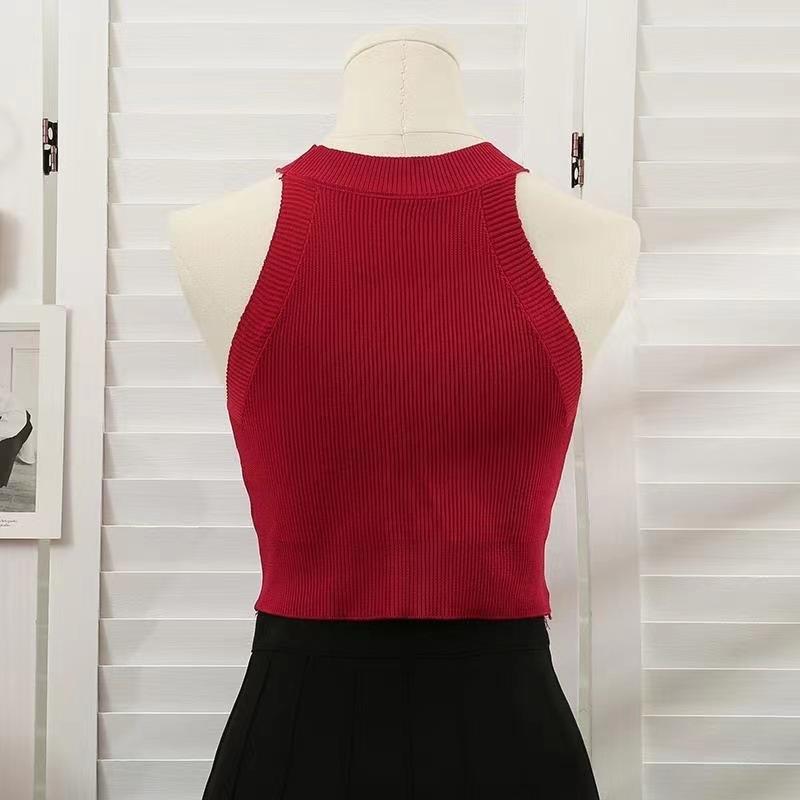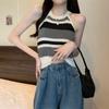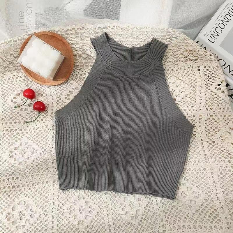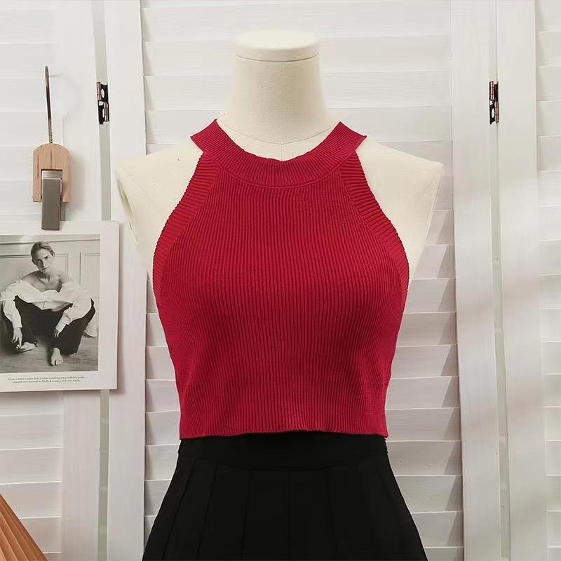 Sem mangas malha pendurado pescoço apertado curto Sling Mulheres 2023 Verão Novo Estilo Spice Girl Outer Wear Camisa Base Colete de Cor Sólida