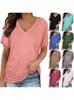 Amazon Comércio Exterior Mulheres Europeias e Americanas Slim Cor Sólida Decote V Manga Curta Top Casual Top/Camisa de Manga Curta com Decote V