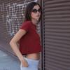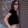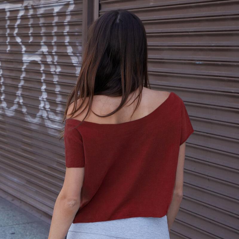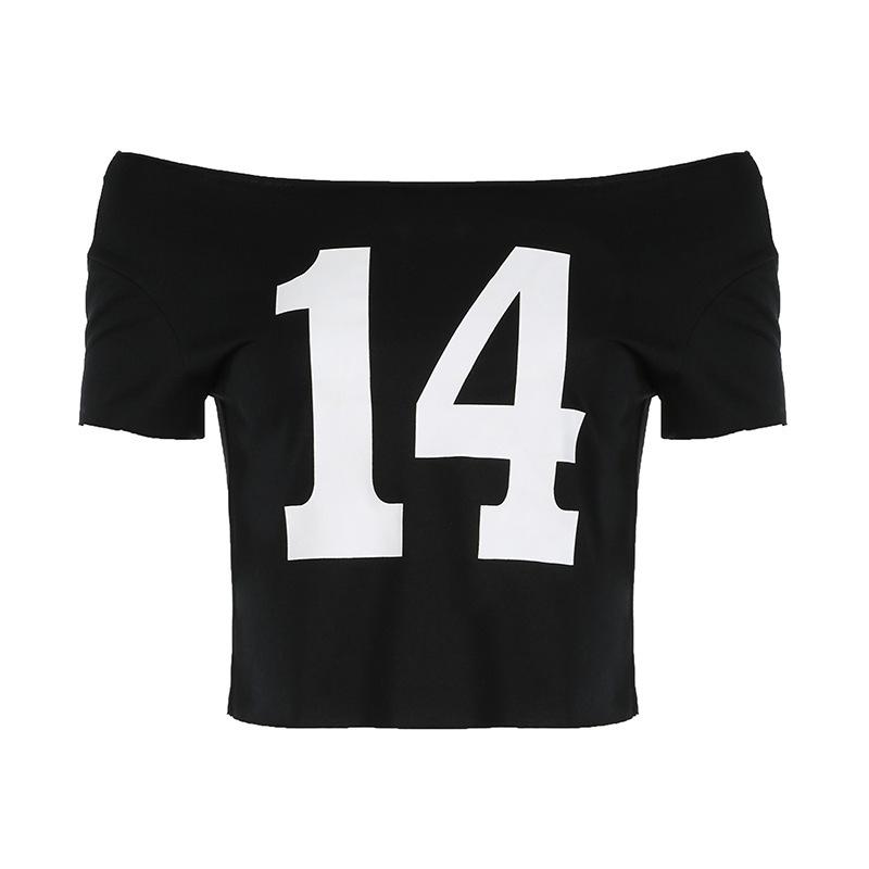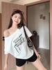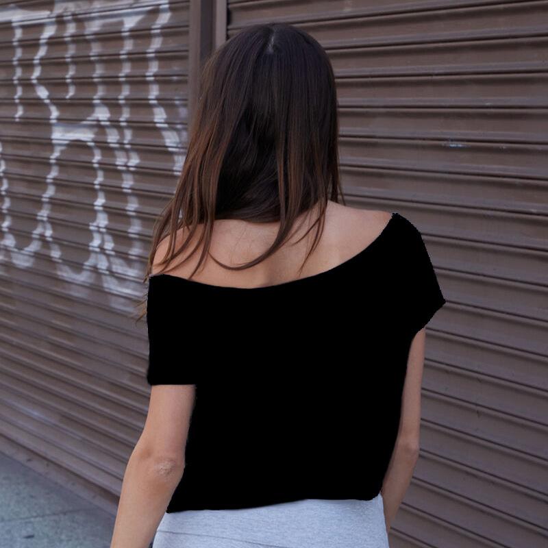Camiseta de Manga Curta com Estampa Digital em Cores Contrastantes Europeia e Americana Moda Pura Curta Solta Gola Ombro Aberto Cintura para Mulheres