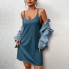 Solid Color Pit Nightgown-Blue-Butterfly Sling/BP