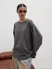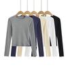 Camiseta de manga comprida de algodão puro, cor sólida, simples e personalizada, estilo casual solto, estilo preguiçoso, da moda, para o início do outono de 2024