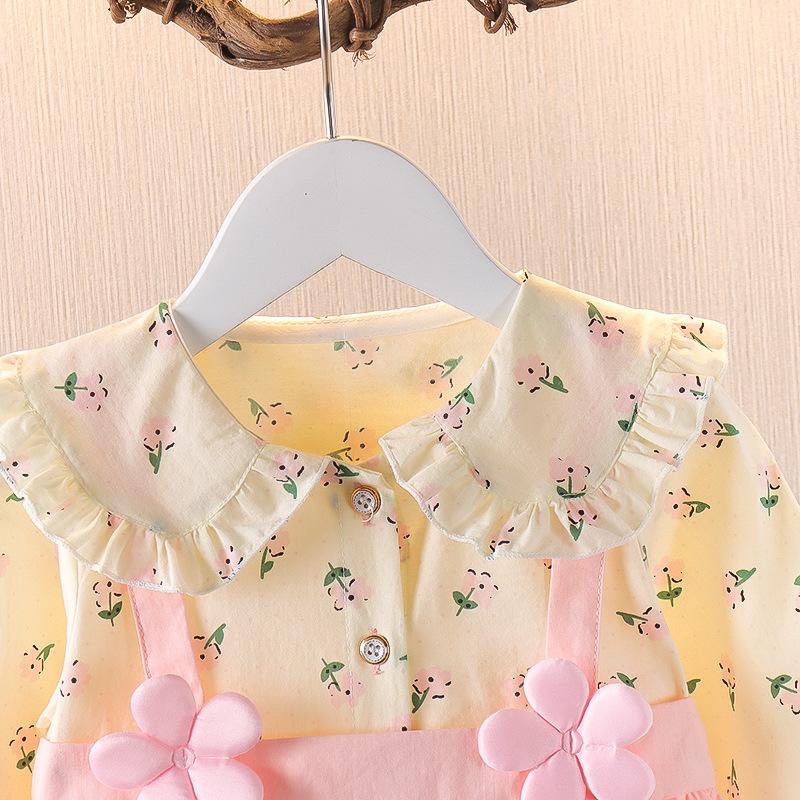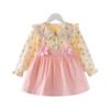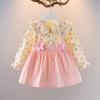 Vestido de menina 2025 Novo Outono Estilo Pastoral Coreano Estilo Ocidental Saia Infantil Vestido de Princesa de Manga Longa para Menina