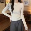 Outono e inverno 2023 Novo fundo justo emagrecedor forrado com lã de manga comprida estilo coreano slim tricô roupa exterior top que combina com tudo para mulheres