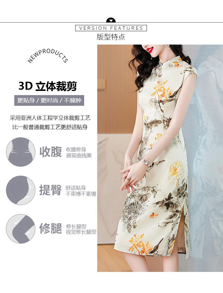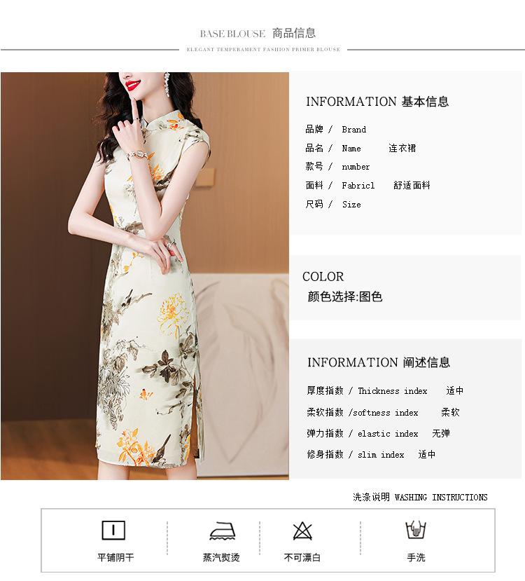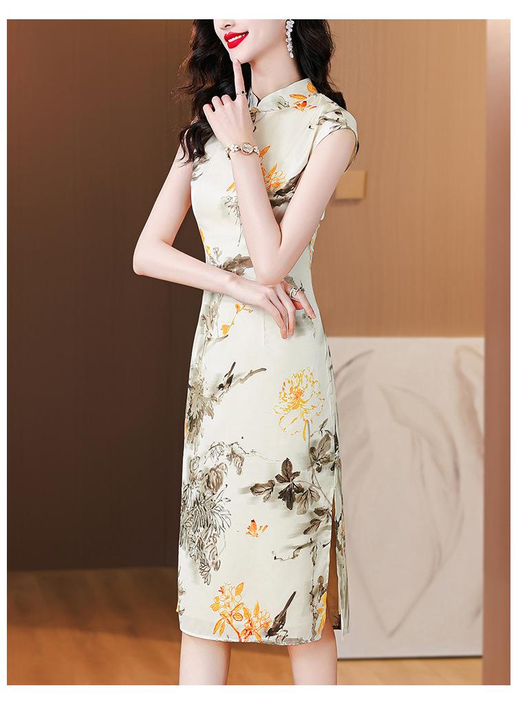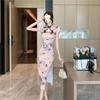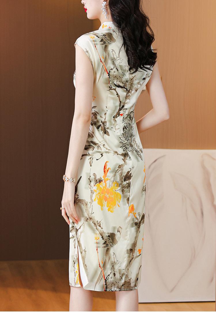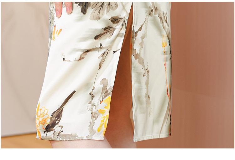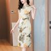 Novo Estilo Chinês Retrô Cheongsam Modificado Feminino 2025 Verão Novo Artístico Estampado Manga Curta Elegante Vestido com Fenda
