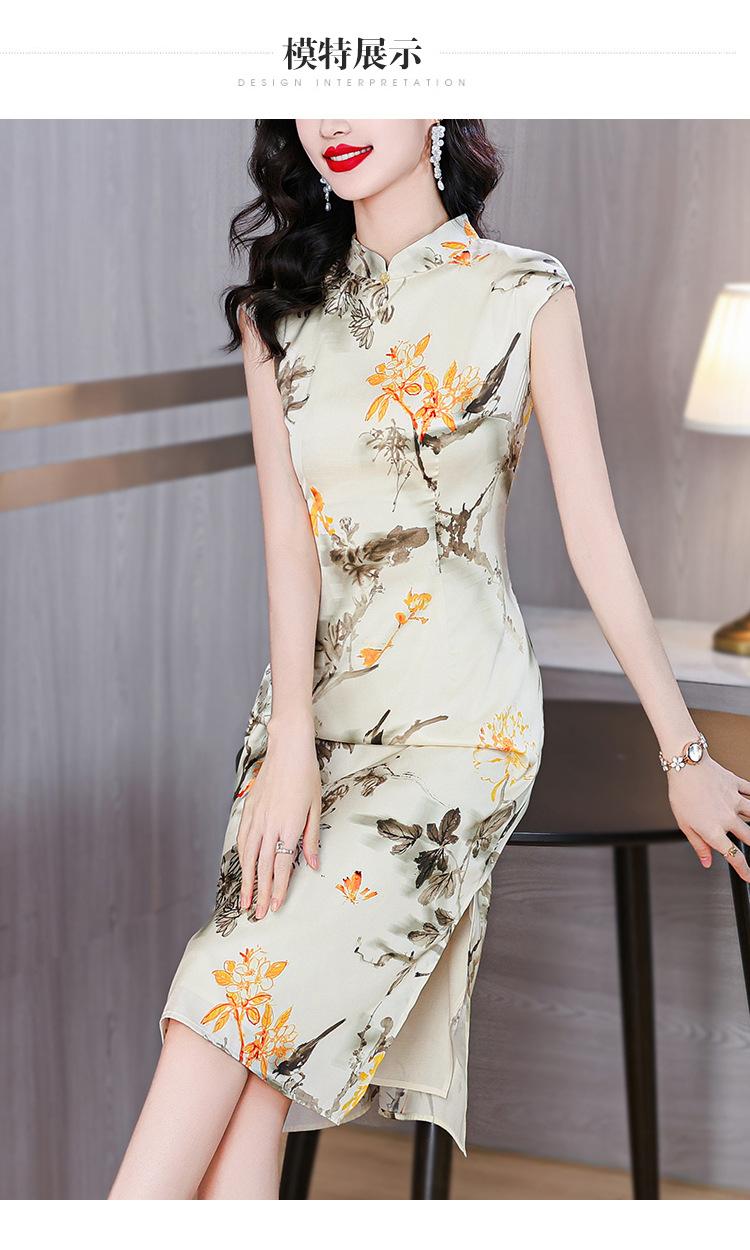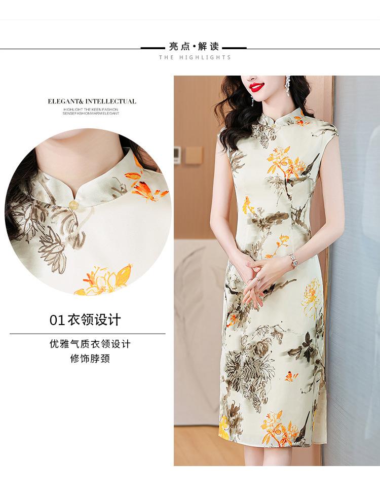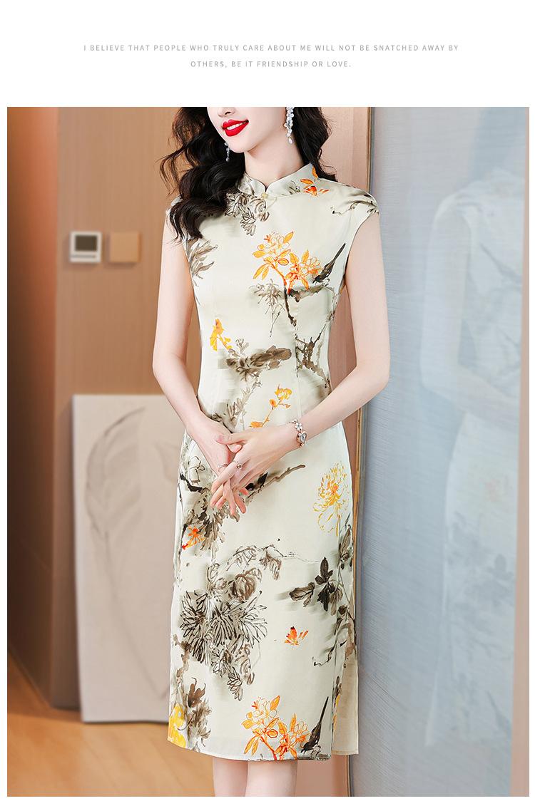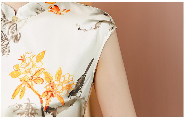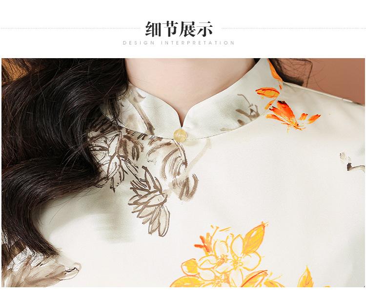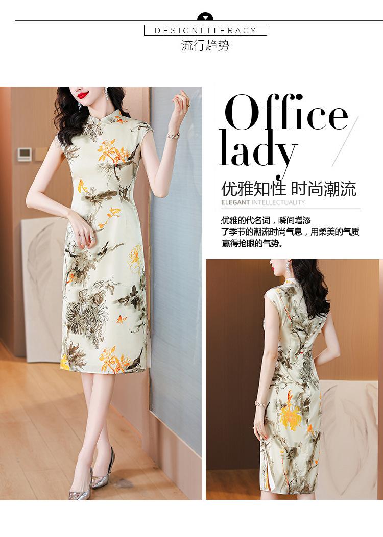 Novo Estilo Chinês Retrô Cheongsam Modificado Feminino 2025 Verão Novo Artístico Estampado Manga Curta Elegante Vestido com Fenda
