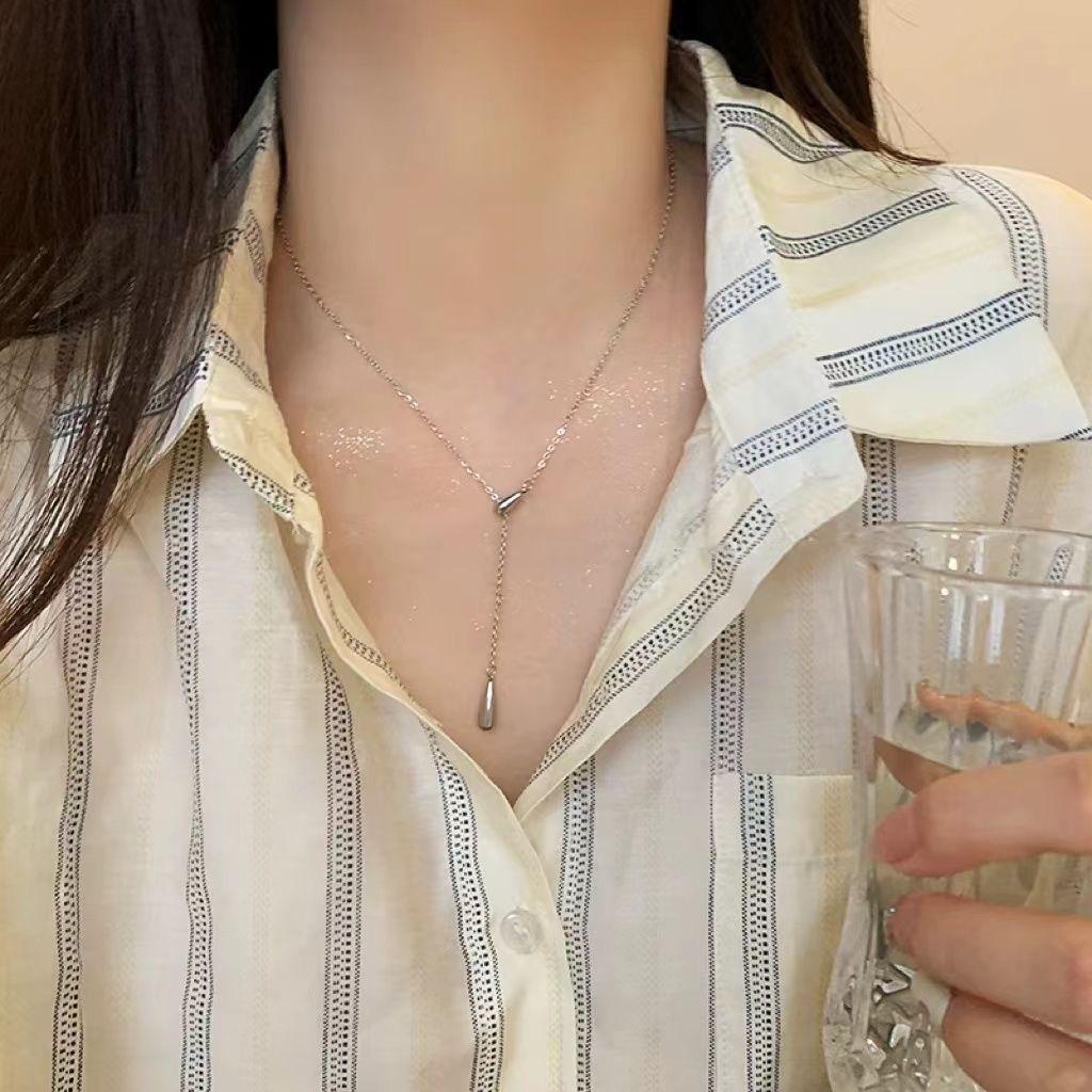 Colar de Aço Titânio Novo Estilo Quente 2025 Colar Corrente Clavicular Pingente Nicho de Luxo Leve Feminino Acessórios de Design High-End