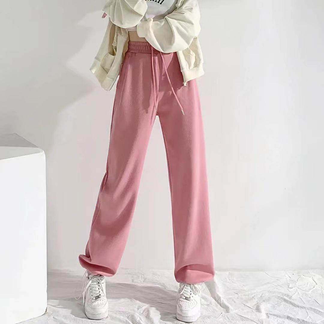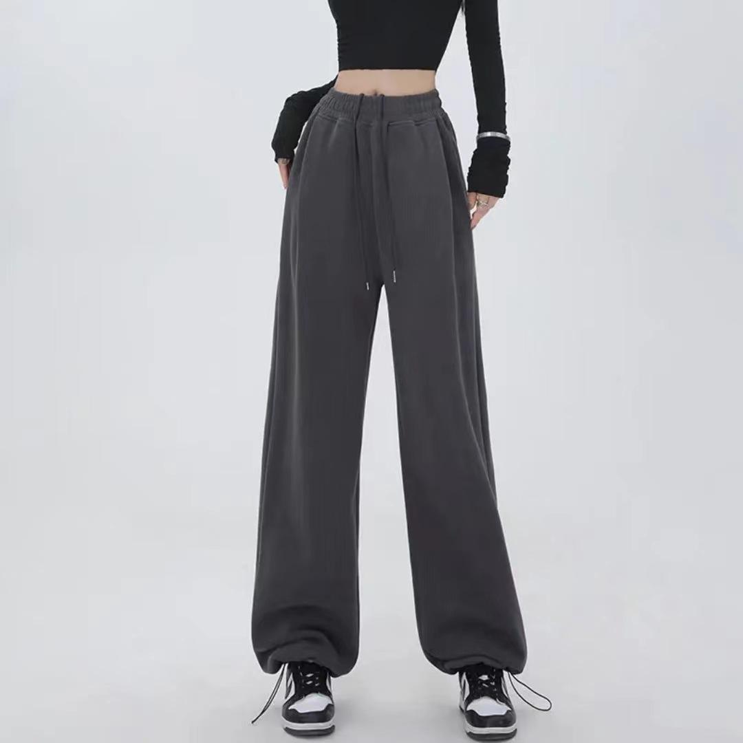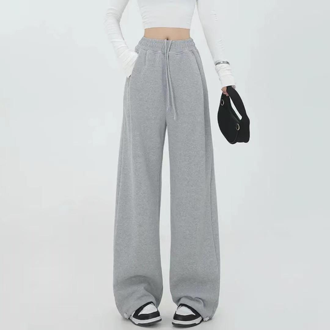 Calças cinzas de perna larga femininas outono e inverno 2023 novas cintura alta caimento reto soltas pequenas esportivas casuais