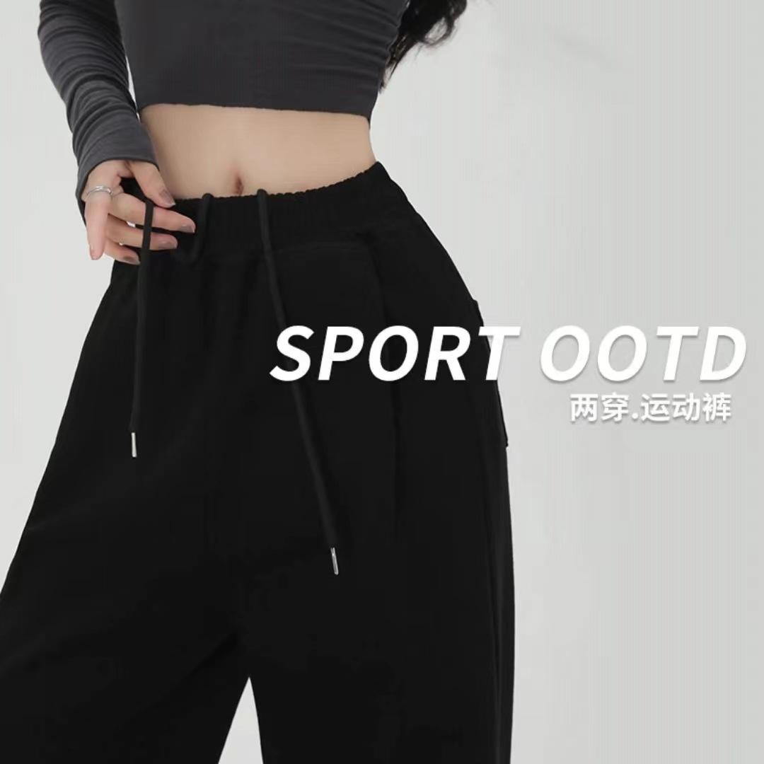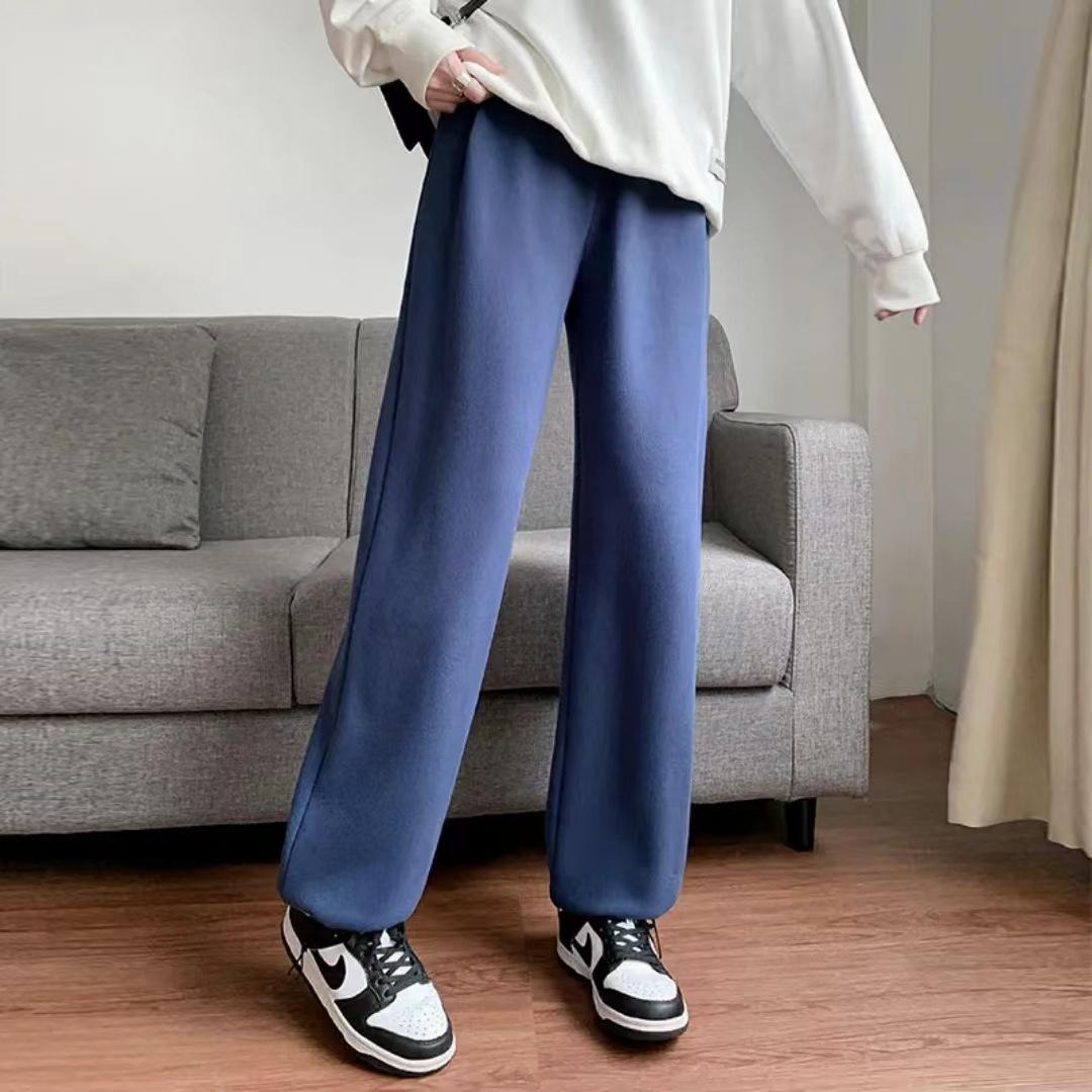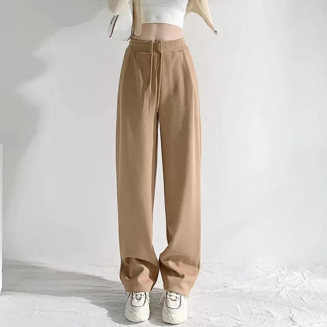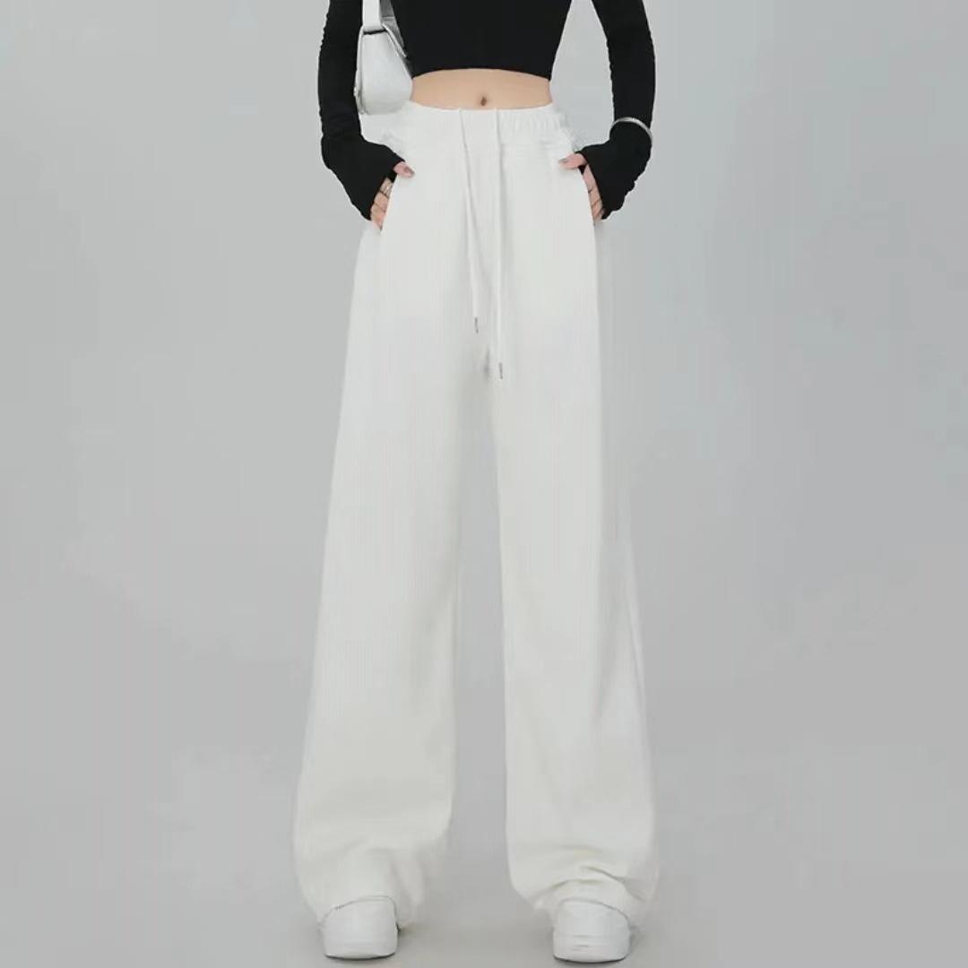 Calças cinzas de perna larga femininas outono e inverno 2023 novas cintura alta caimento reto soltas pequenas esportivas casuais