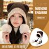 Coreia do Sul Bonito Cor-combinando Teddy Velvet Bear Ear Strap Lei Feng Chapéu Feminino Inverno Quente Proteção de Orelhas Tricotado Chapéu de Lã