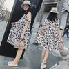 Verão Maternidade Novo Moda Coreana Listrado Bordado Tamanho Grande Comprimento Médio Vestido de Maternidade