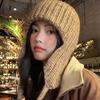 Chapéu de Lã Tricotado Estilo Coreano para Proteção de Orelhas Feminino Inverno Espessado Quente Lei Feng Chapéu Voador Alça Chapéu de Lã