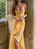 Estilo Europeu e Americano Primavera e Verão Novo Vestido Feminino Sexy Sem Costas Temperamento Malha Alça Irregular Cor Sólida Slim