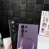 Magsafe para Capa de Celular Samsung S25ultra Pintura Metálica Magnética S24plus com Película de Lente S23U Macia