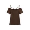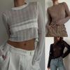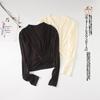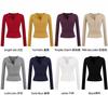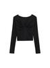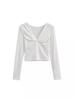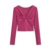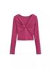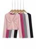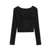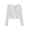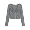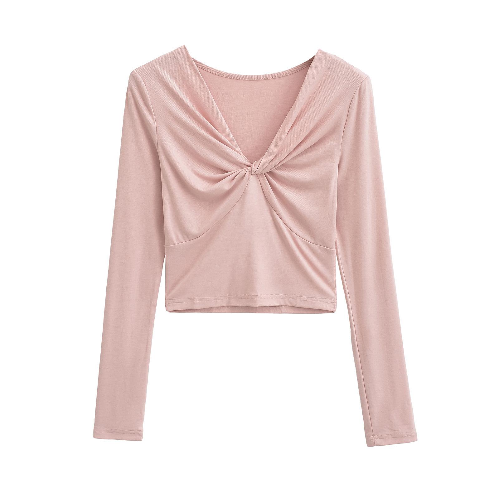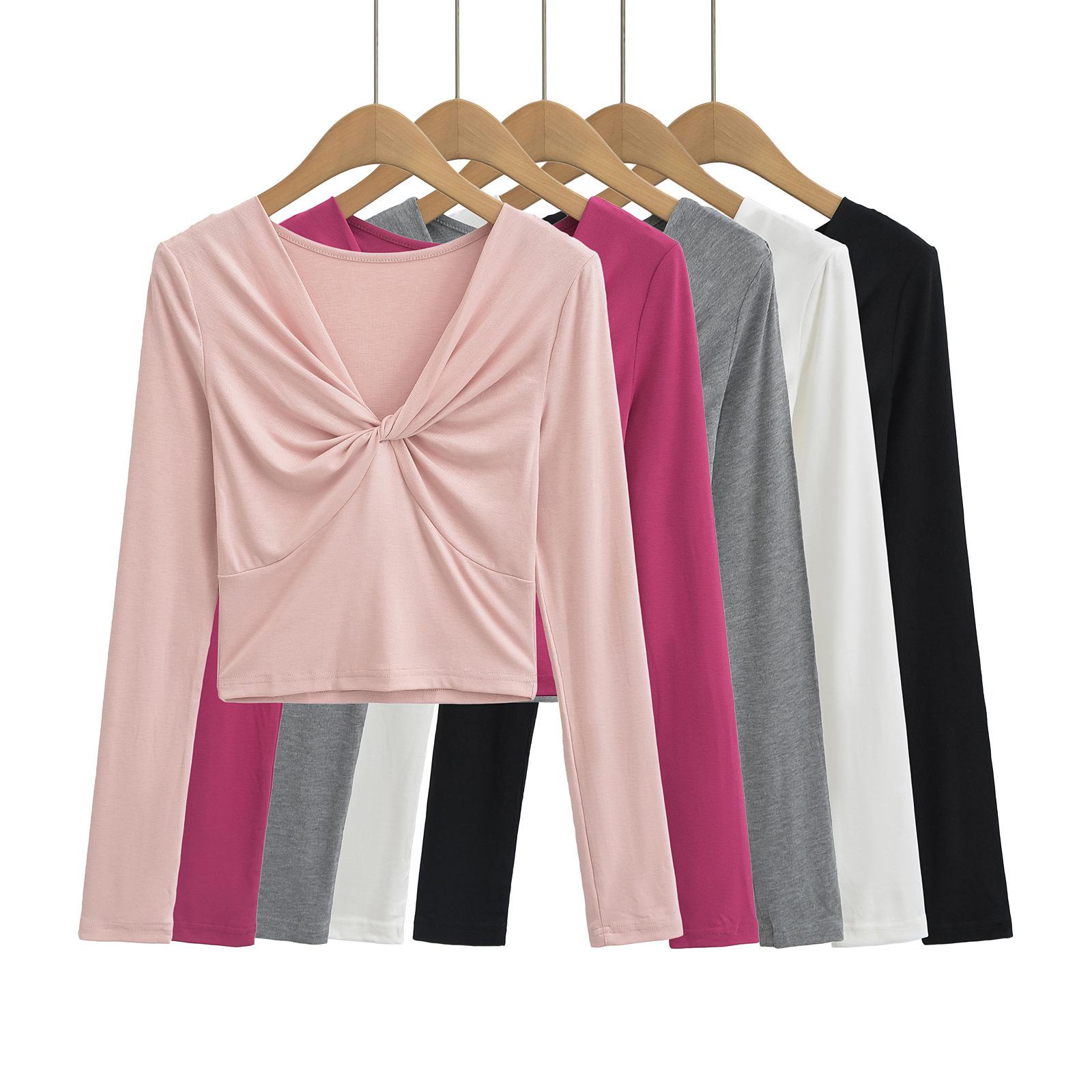 Camiseta Básica Decote V Nó Ajustada Europeia e Americana Desejo Puro Meninas Quentes Cintura Alta Curta Umbigo Justa Manga Longa