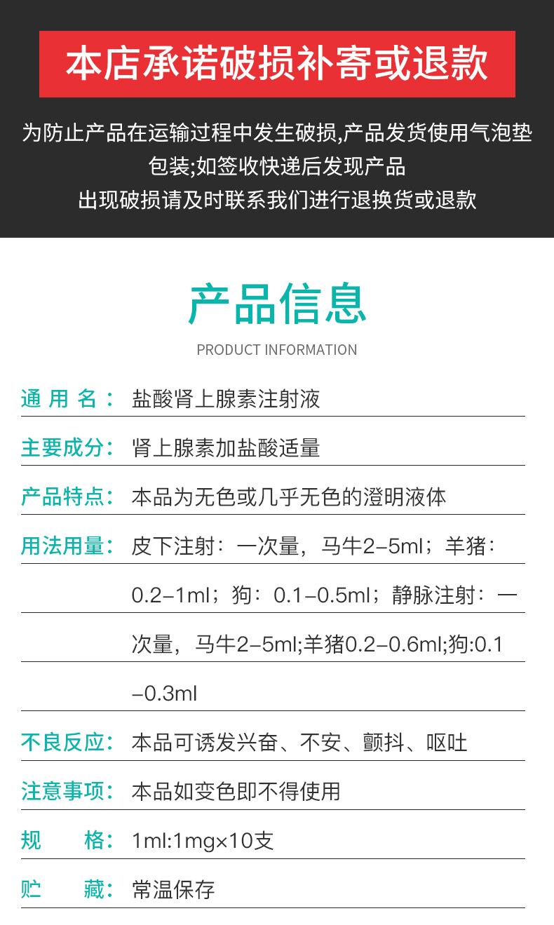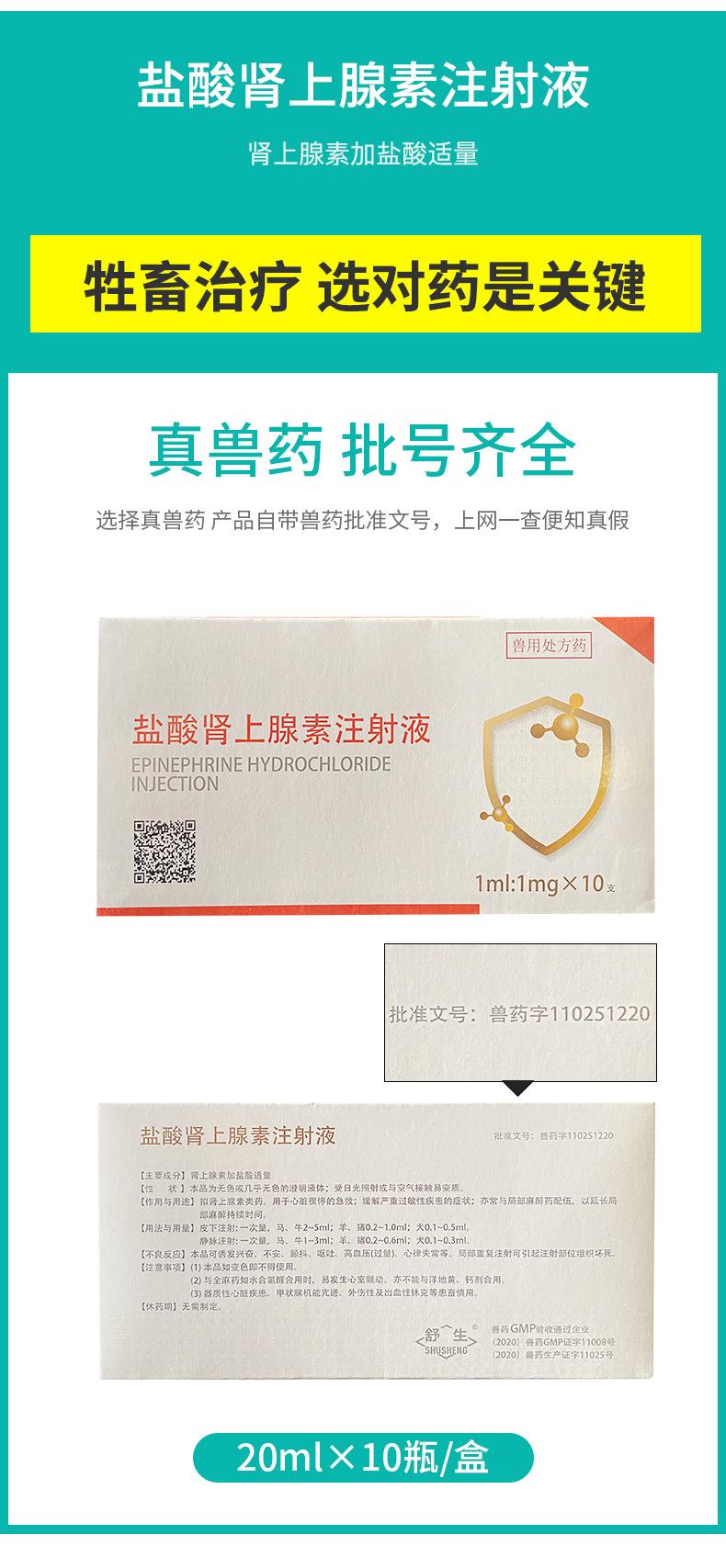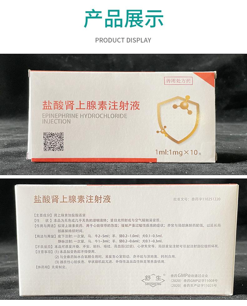 Cloridrato de Epinefrina Veterinário Primeiros Socorros Caninos e Felinos Vacina Resgate de Estresse para Suínos, Bovinos e Ovinos Pacote com 10 Atacado Genuíno