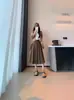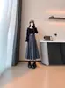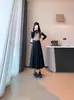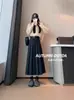 Saia Plissada de Lã Preta para Mulheres 2024 Nova Saia Guarda-Chuva Outono e Inverno Comprimento Médio Pequena Cintura Alta Linha A