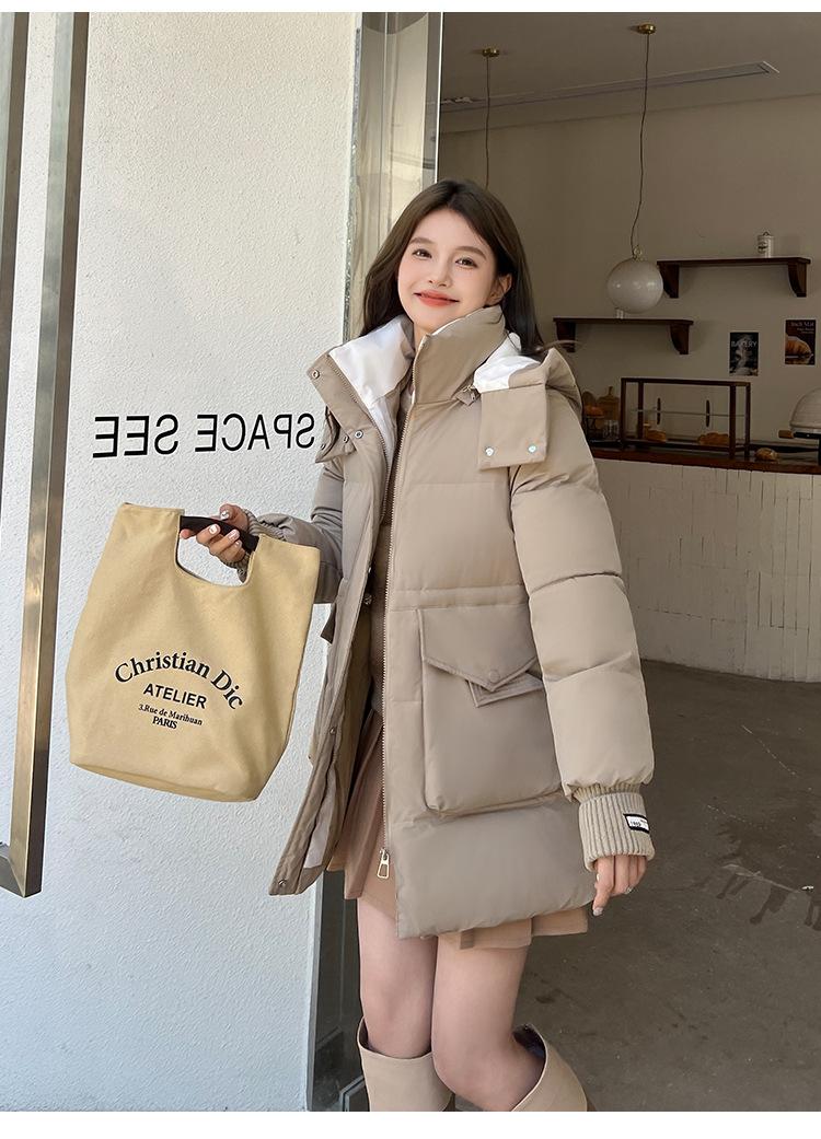 Jaqueta acolchoada de algodão para baixo feminina comprimento médio 2024 inverno nova solta plus size acolchoada jaqueta acolchoada casaco acolchoado de algodão