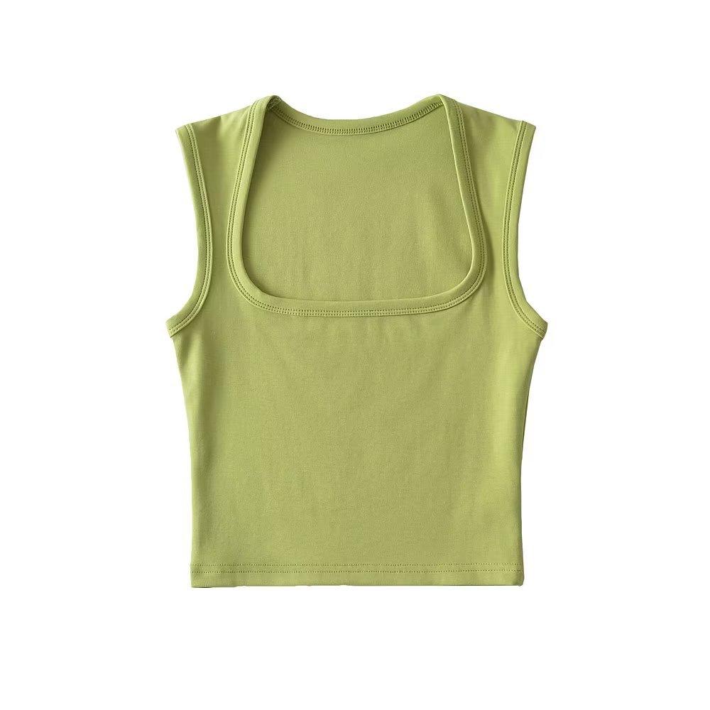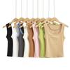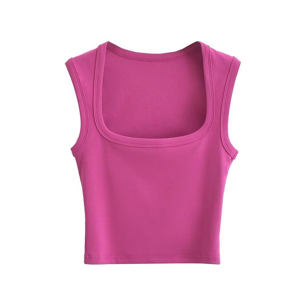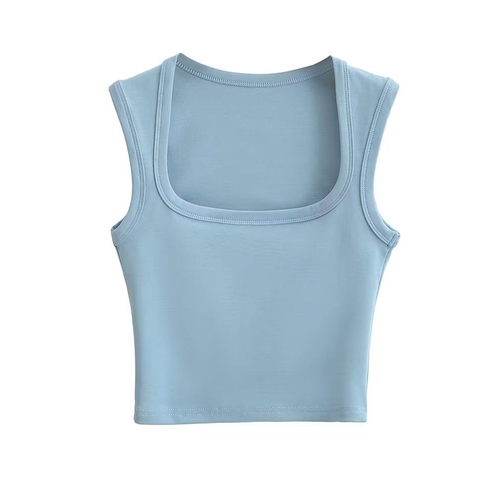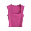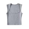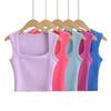 Roupas femininas de garota gostosa europeia e americana verão novo roupas femininas europeias e americanas cor sólida gola quadrada sem mangas justa colete curto top