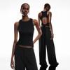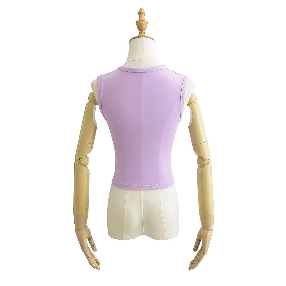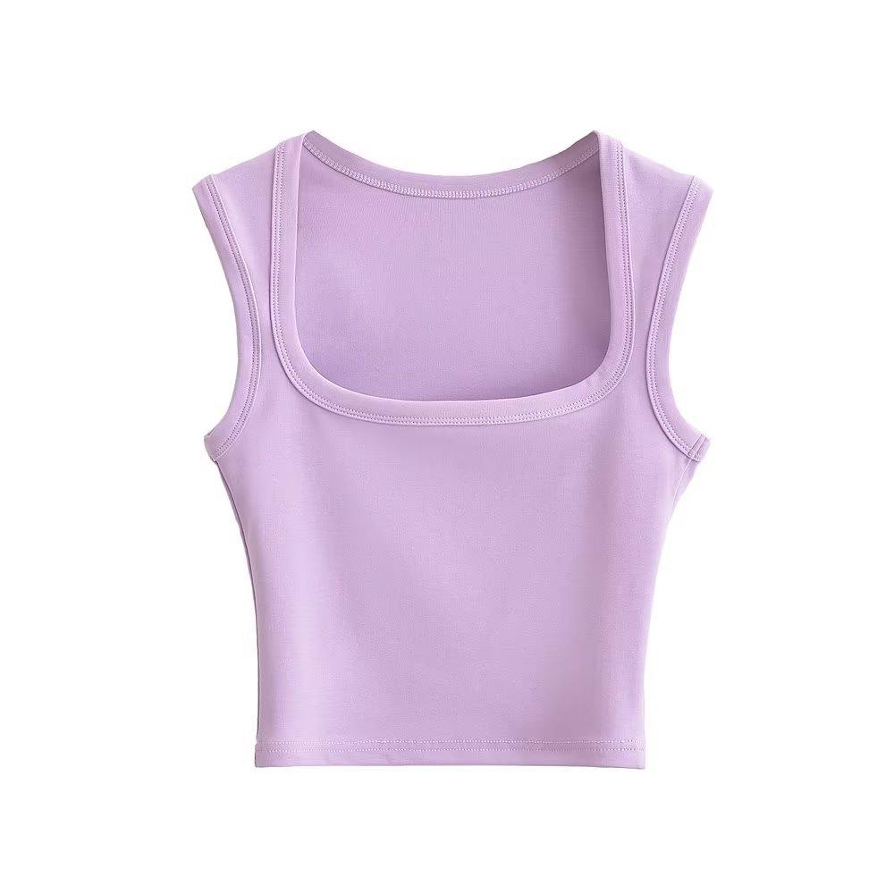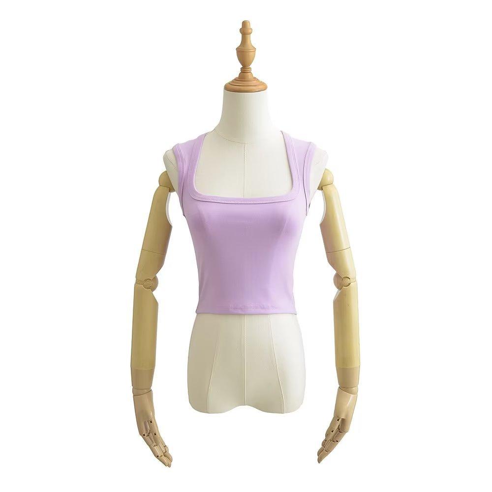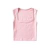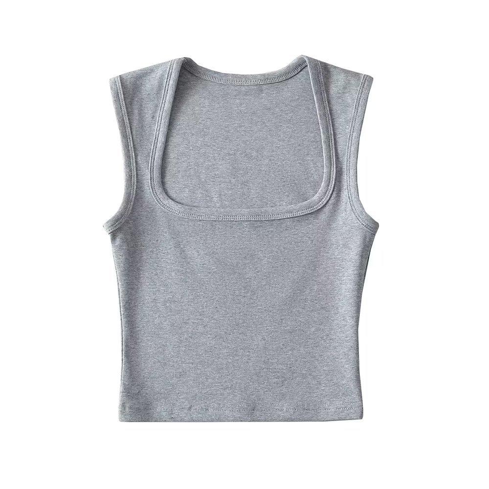 Roupas femininas de garota gostosa europeia e americana verão novo roupas femininas europeias e americanas cor sólida gola quadrada sem mangas justa colete curto top