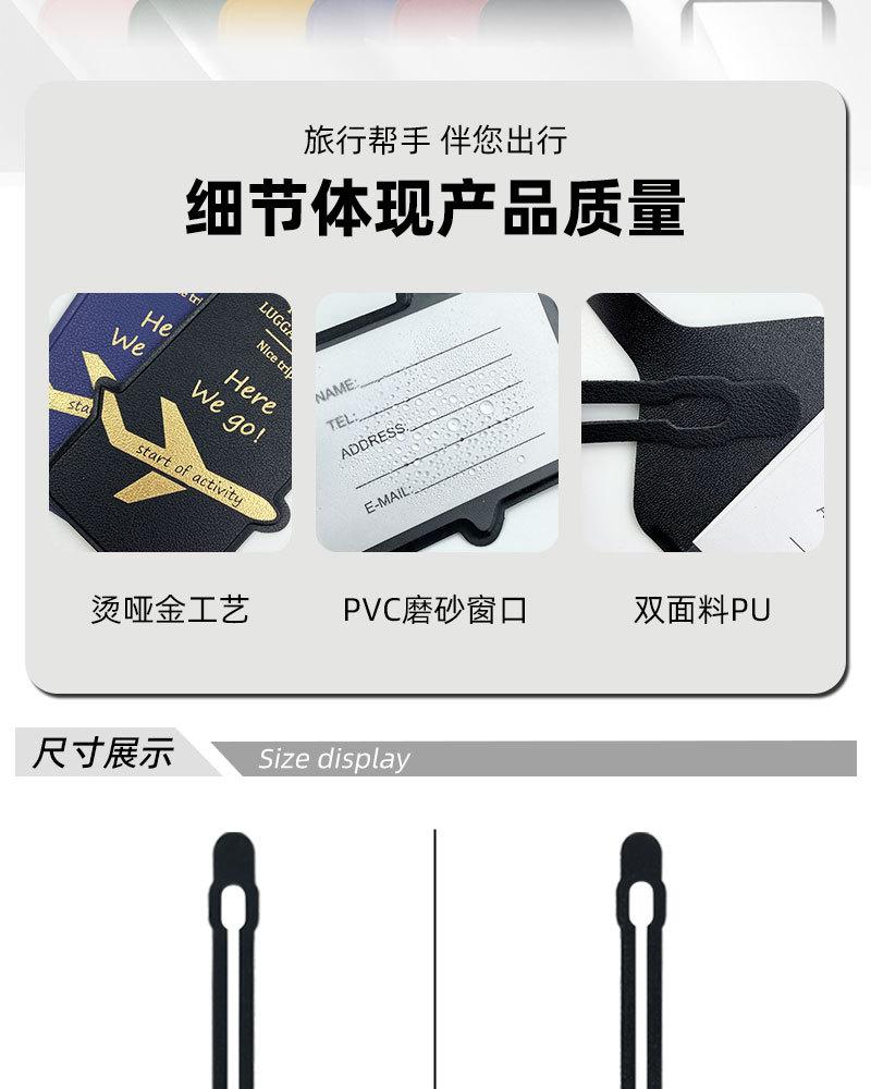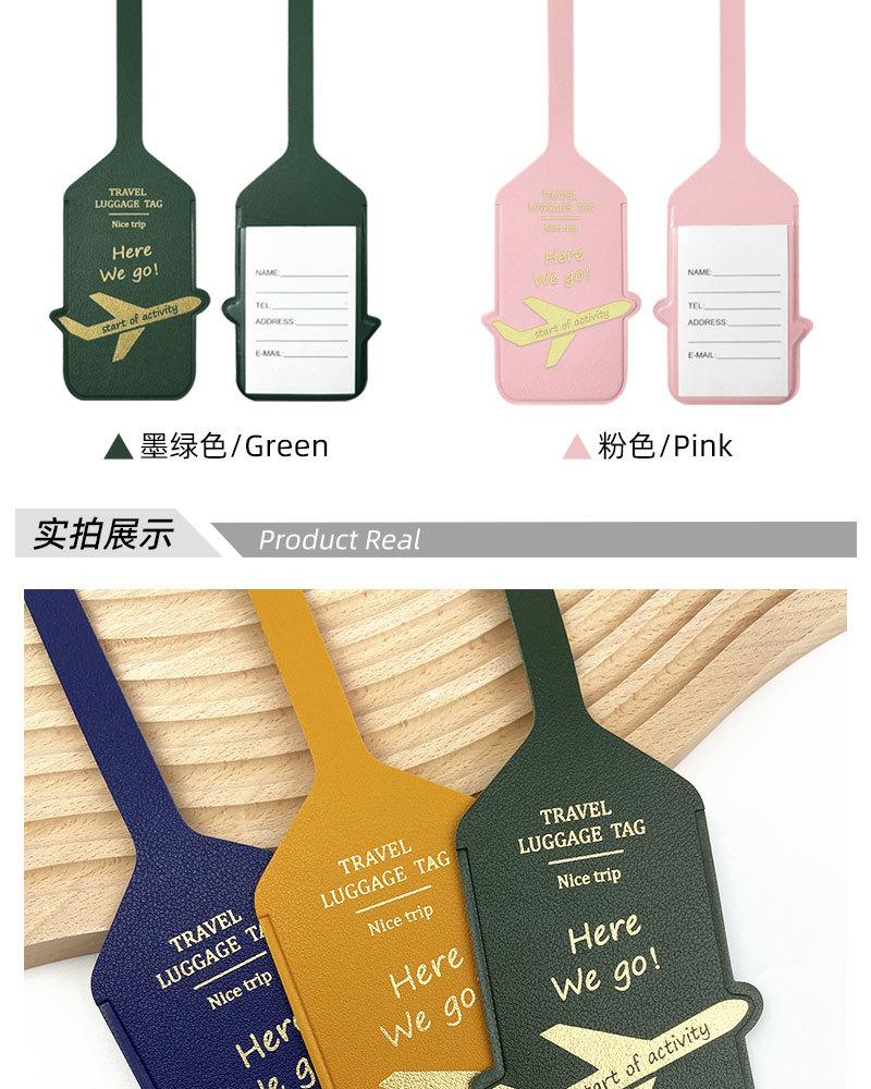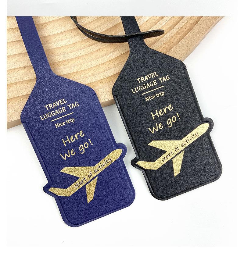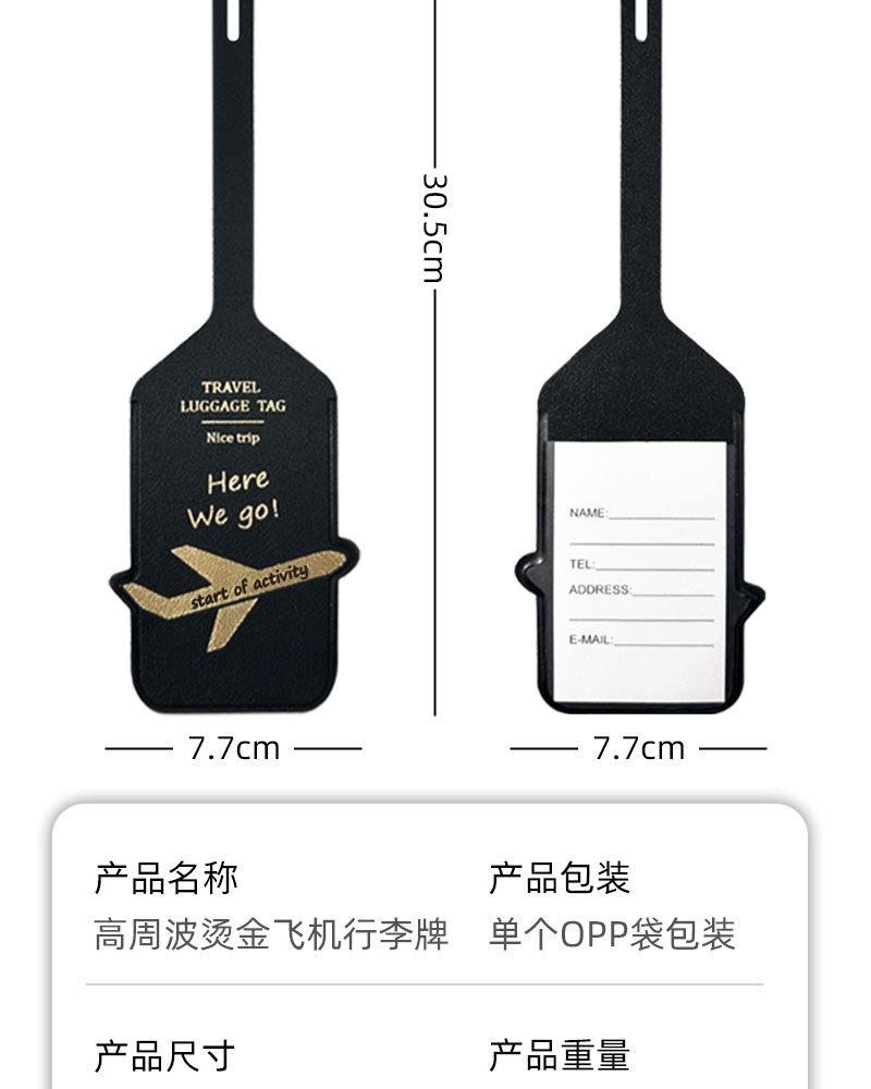 Etiqueta de bagagem de couro PU engrossado dupla face transfronteiriça, estampada a quente com avião, cartão de papel termoprensado, etiqueta de bagagem de couro, cartão de embarque