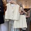 Conjunto de Saia de Cintura Alta Nova Coleção Primavera/Outono 2025 Pequeno Perfume Branco Duas Peças Feminino Regata Sem Mangas Top Colete