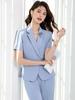 Blazer Azul de Verão de Manga Curta Feminino Calças Roupa de Negócios de Alta Qualidade azul claro Roupa de Duas Peças de Alta Qualidade Moda