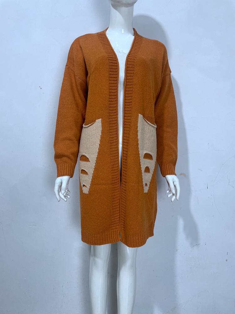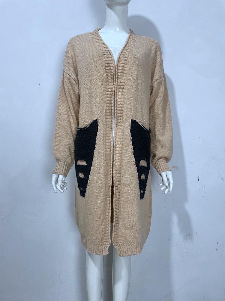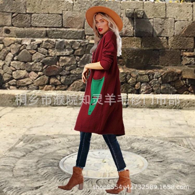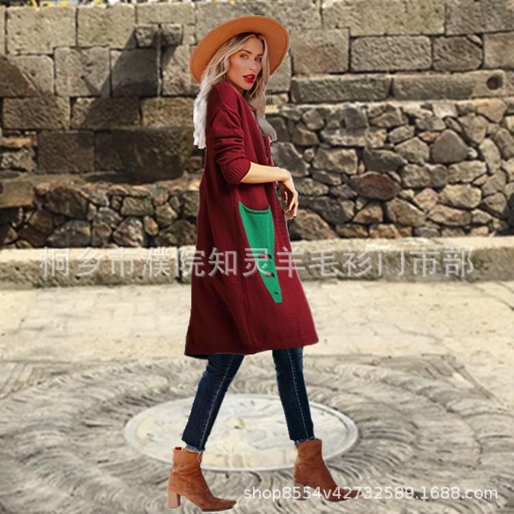 Amazon comércio exterior novo suéter bolso cor contrastante cardigã outono e inverno casaco de malha europeu e americano suéter feminino transfronteiriço