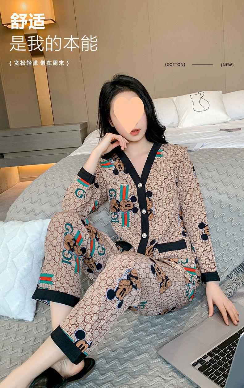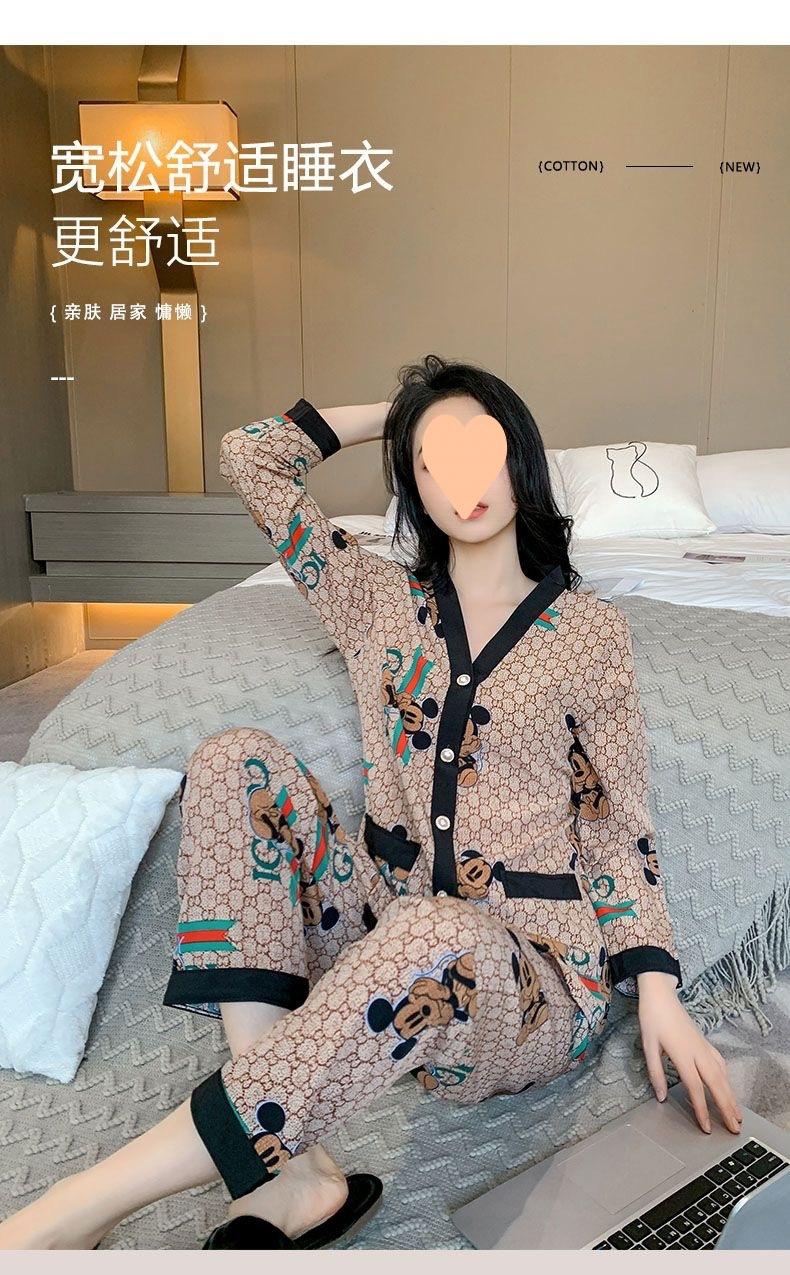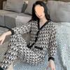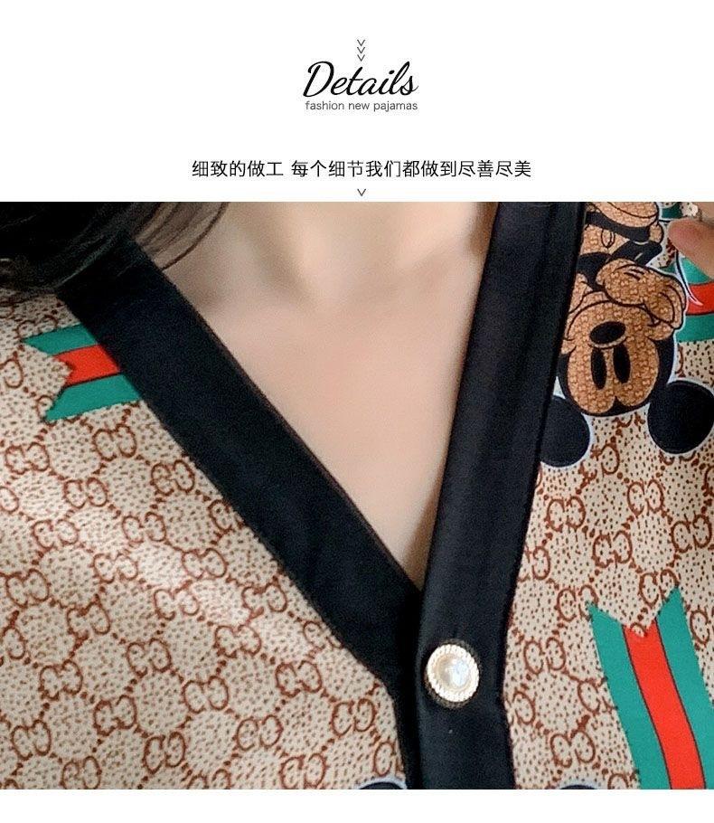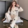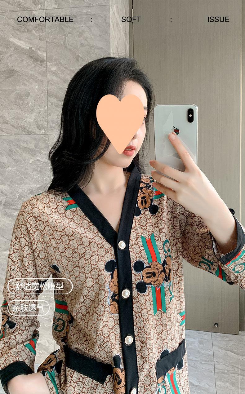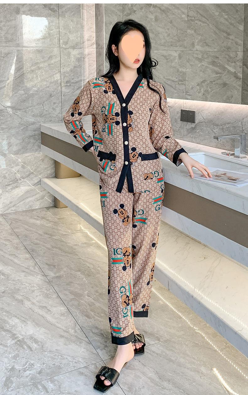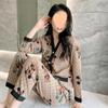 Pijama de Seda Gelo para Mulheres Primavera & Outono Fina Ins Popular Desenho Animado Seda Conjunto de Duas Peças Primavera e Verão Roupa de Casa Terno de Manga Comprida