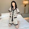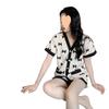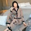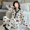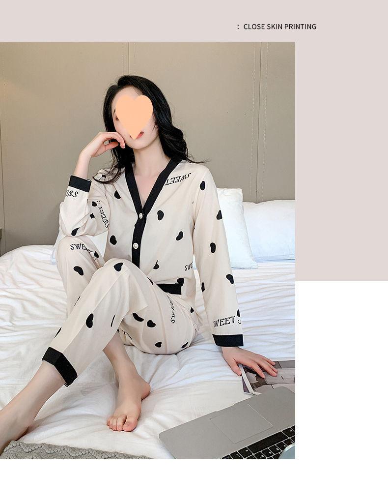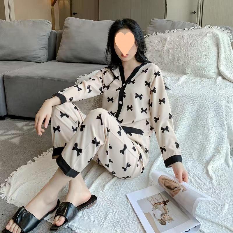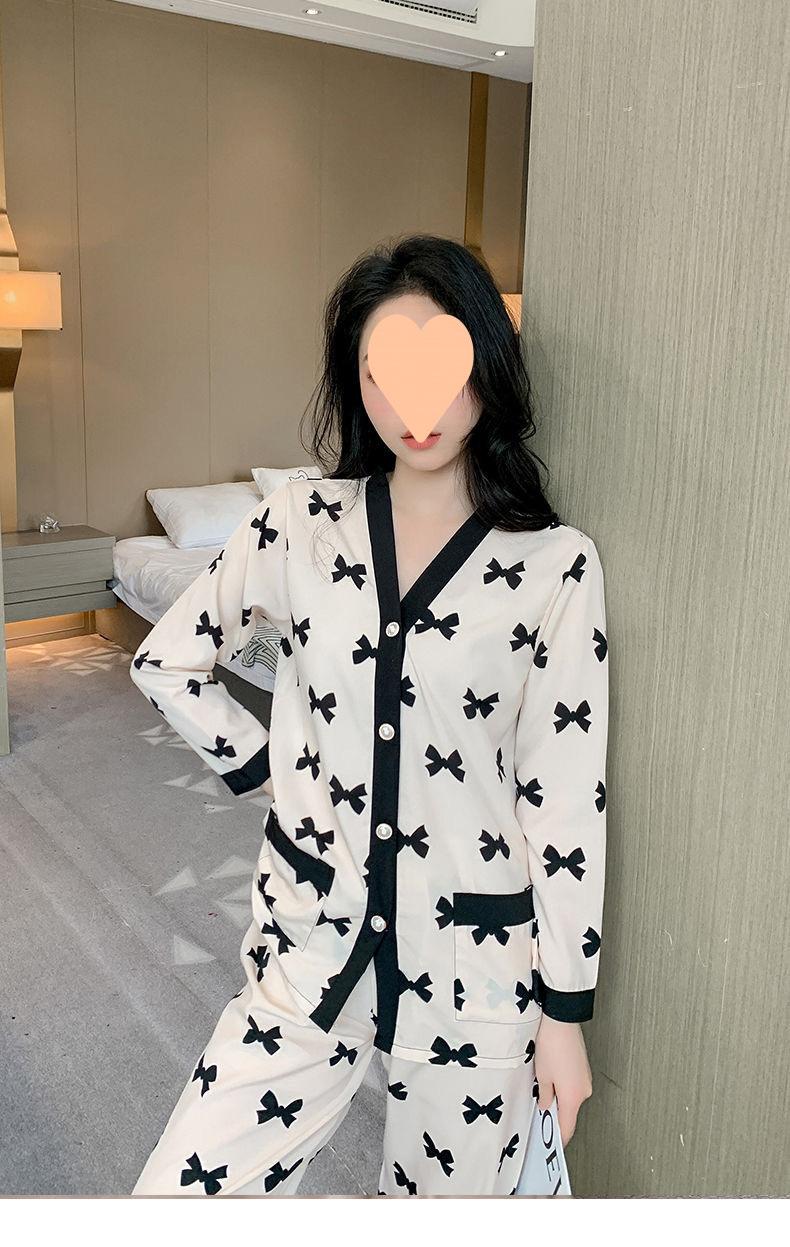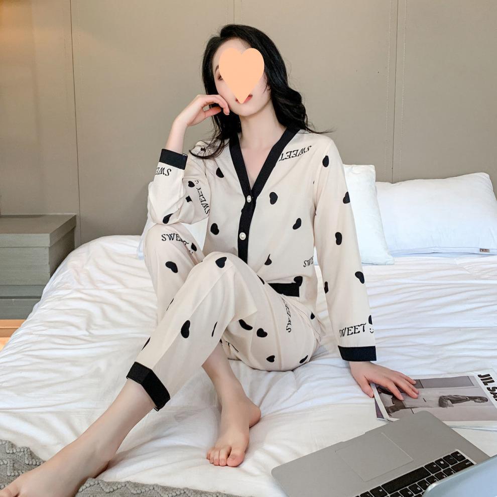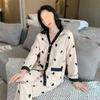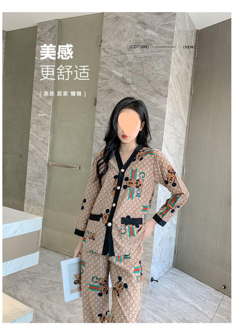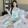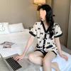 Pijama de Seda Gelo para Mulheres Primavera & Outono Fina Ins Popular Desenho Animado Seda Conjunto de Duas Peças Primavera e Verão Roupa de Casa Terno de Manga Comprida