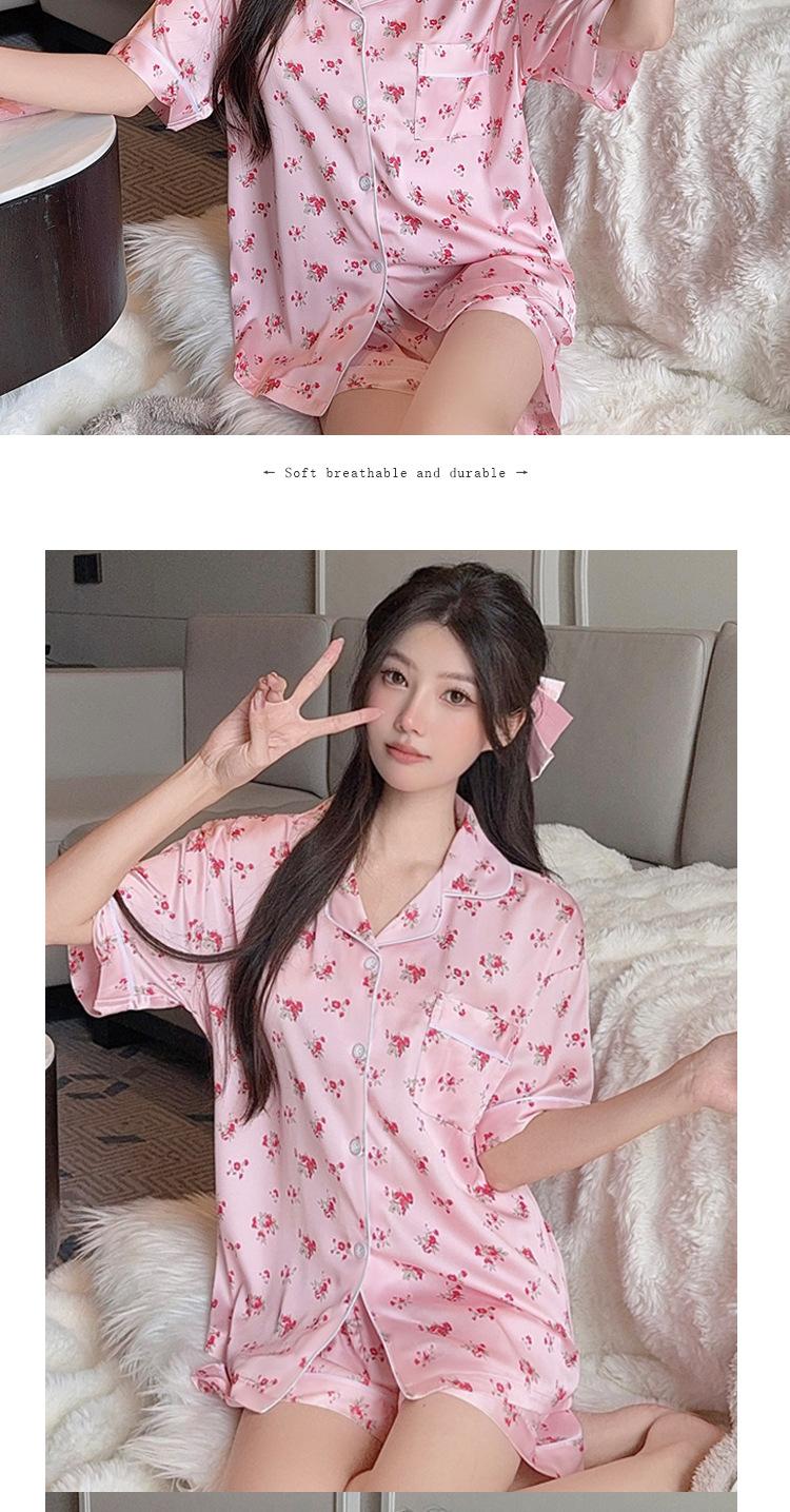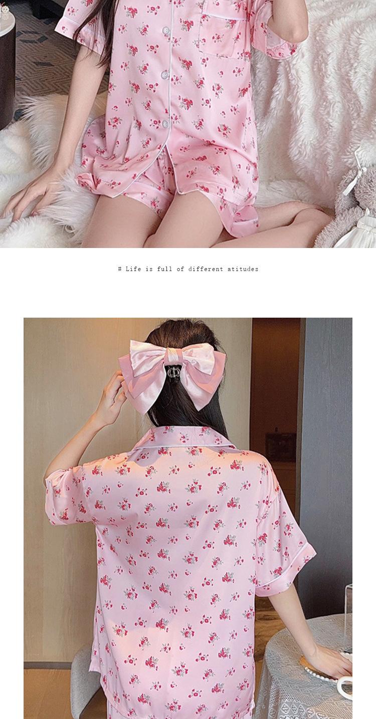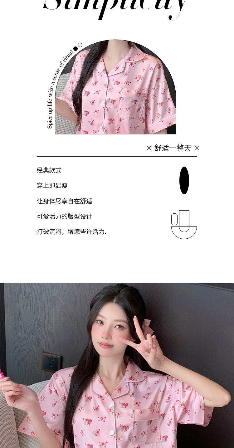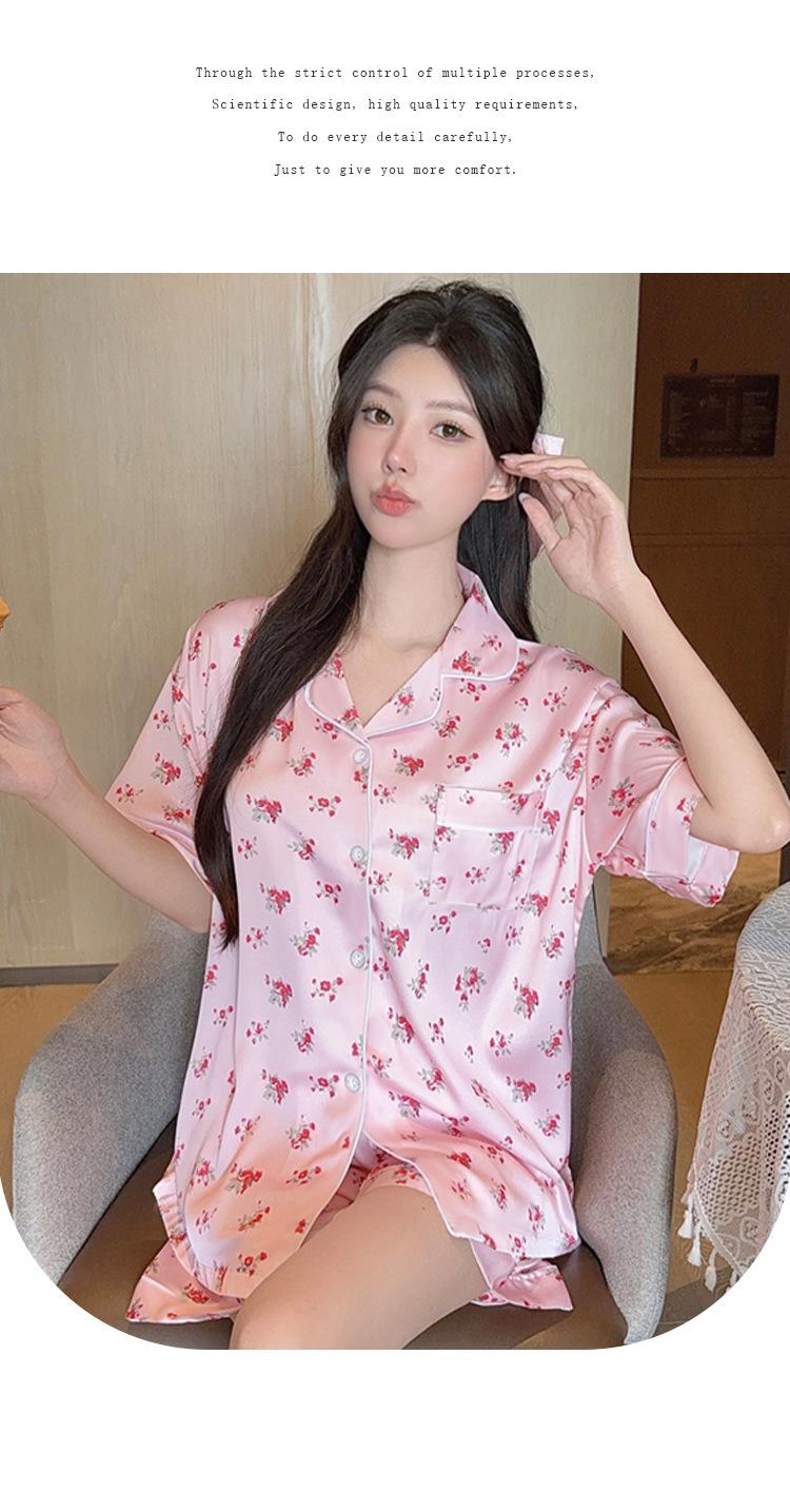 Verão novo pijama de seda gelo feminino fresco manga curta pastoral floral pequeno doce fino roupa de casa terno atacado