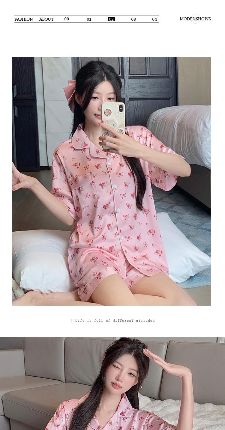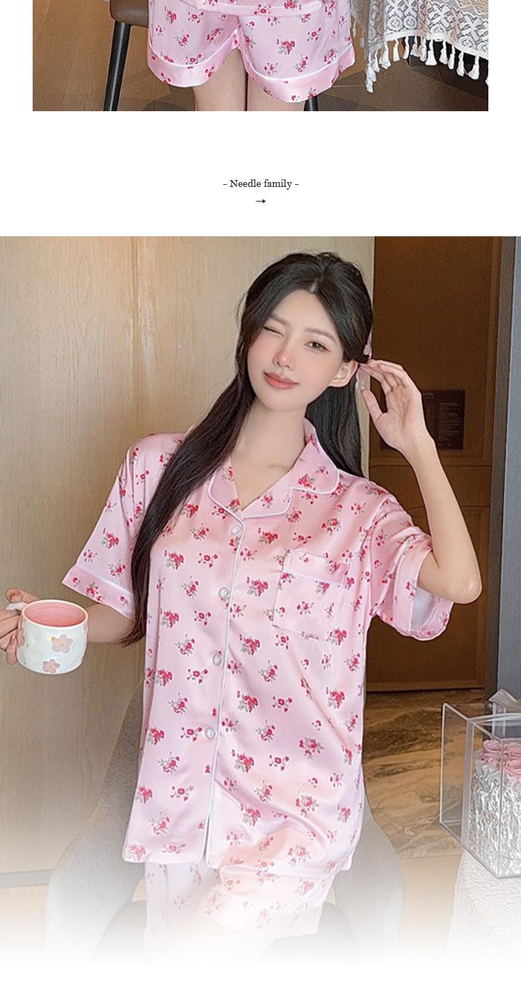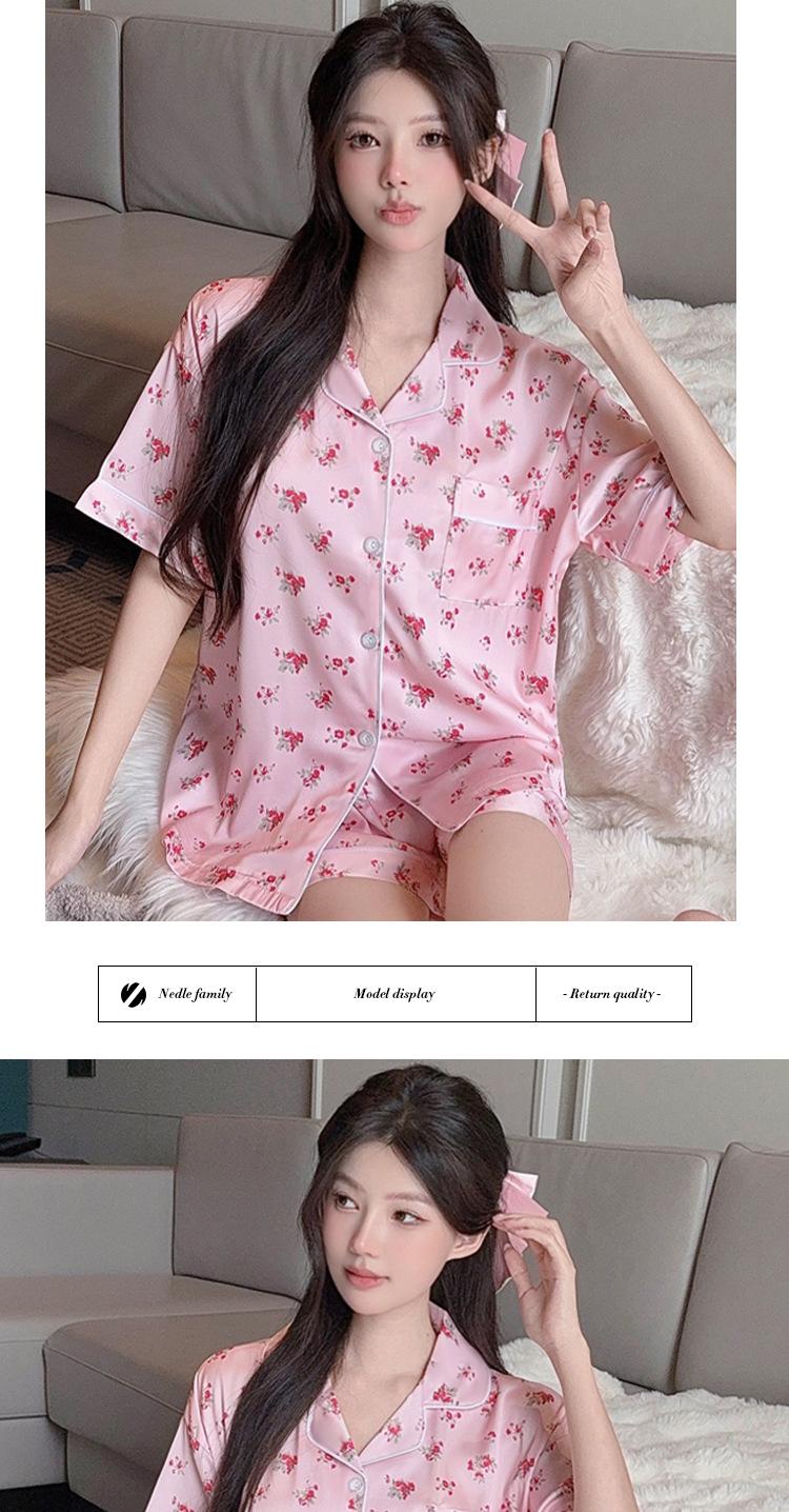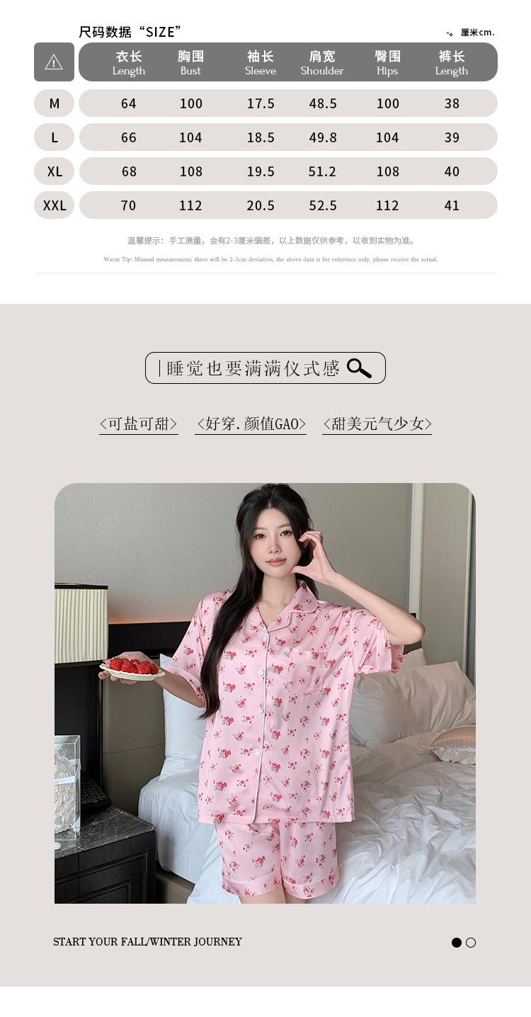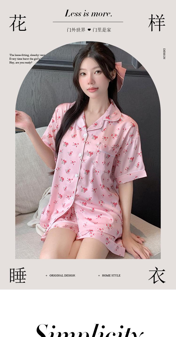Verão novo pijama de seda gelo feminino fresco manga curta pastoral floral pequeno doce fino roupa de casa terno atacado