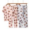 Pijama de Algodão Cartoon Estilo Princesa para Mulheres Verão Novo Renda Manga Curta Roupa de Casa Conjunto de Três Peças Atacado