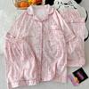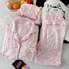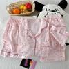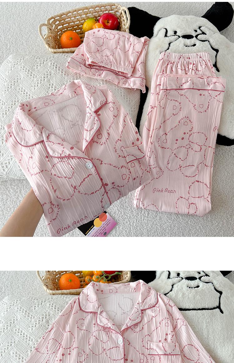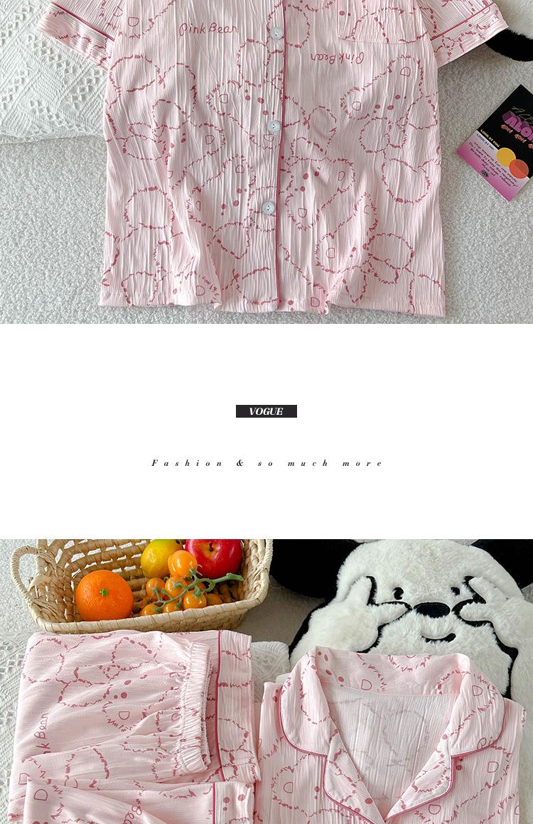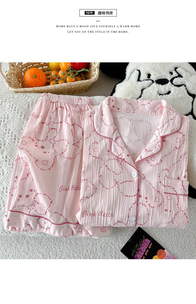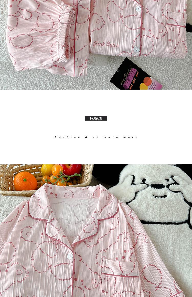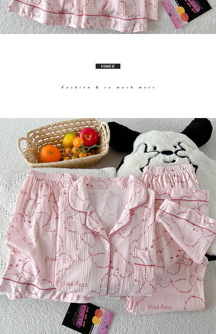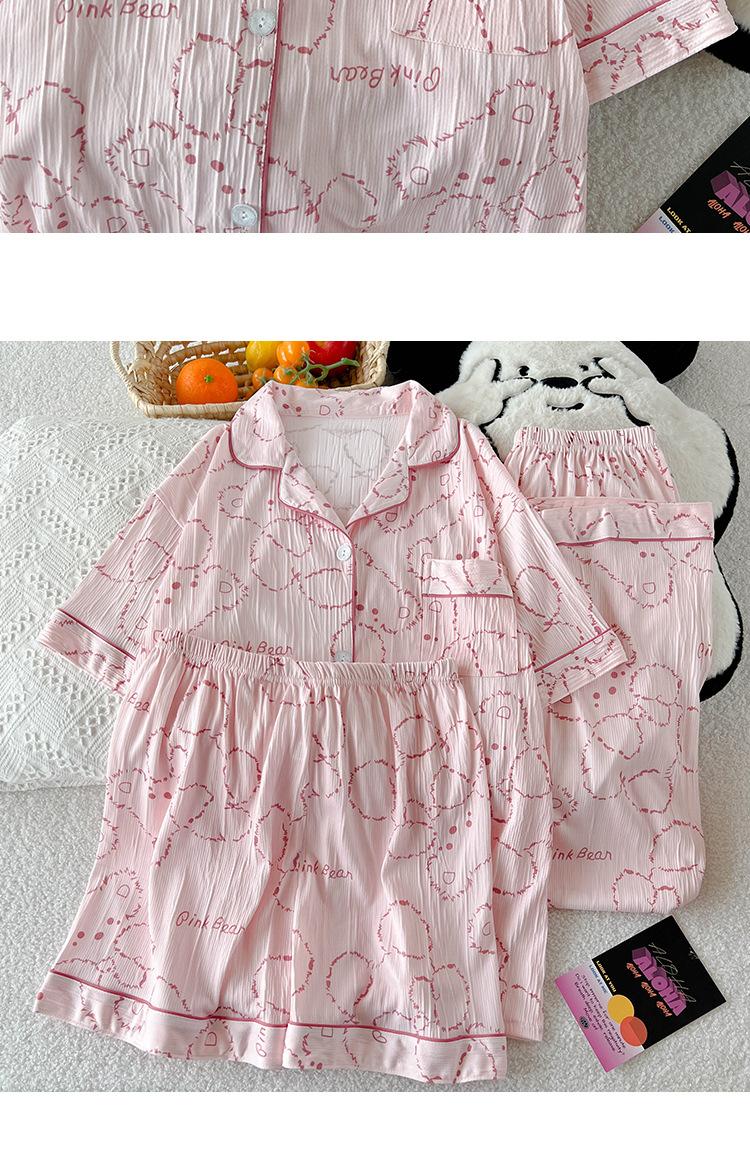 Pijama de Verão Nova de Manga Curta para Mulheres Estilo Ins Desenho Animado Menina Urso de Pelúcia Conjunto de Três Peças Roupa de Casa Foto Real Atacado