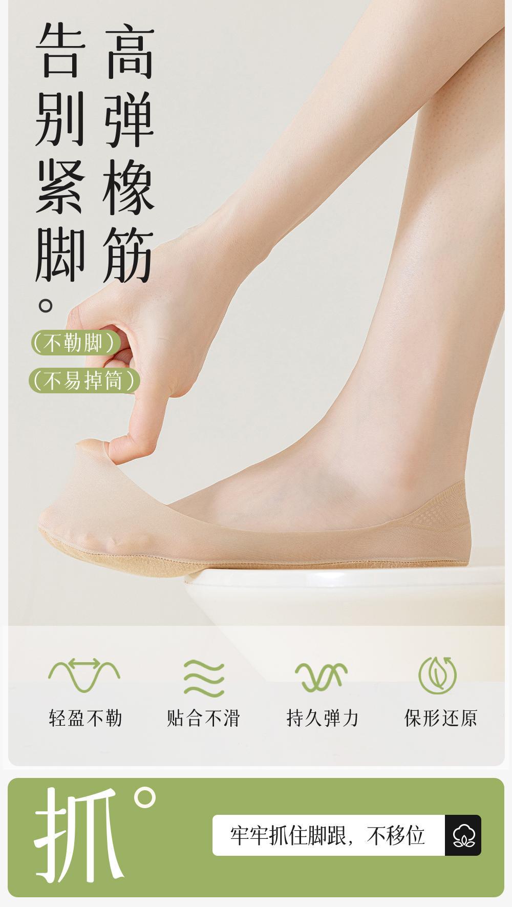 Verão Boca Rasa Sem Costura Antiderrapante Meias Barco de Seda Gelo Meias Finas de Alta Elasticidade Transparentes Femininas Desodorante Respirável Silicone Meias Invisíveis