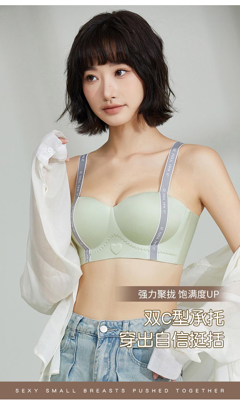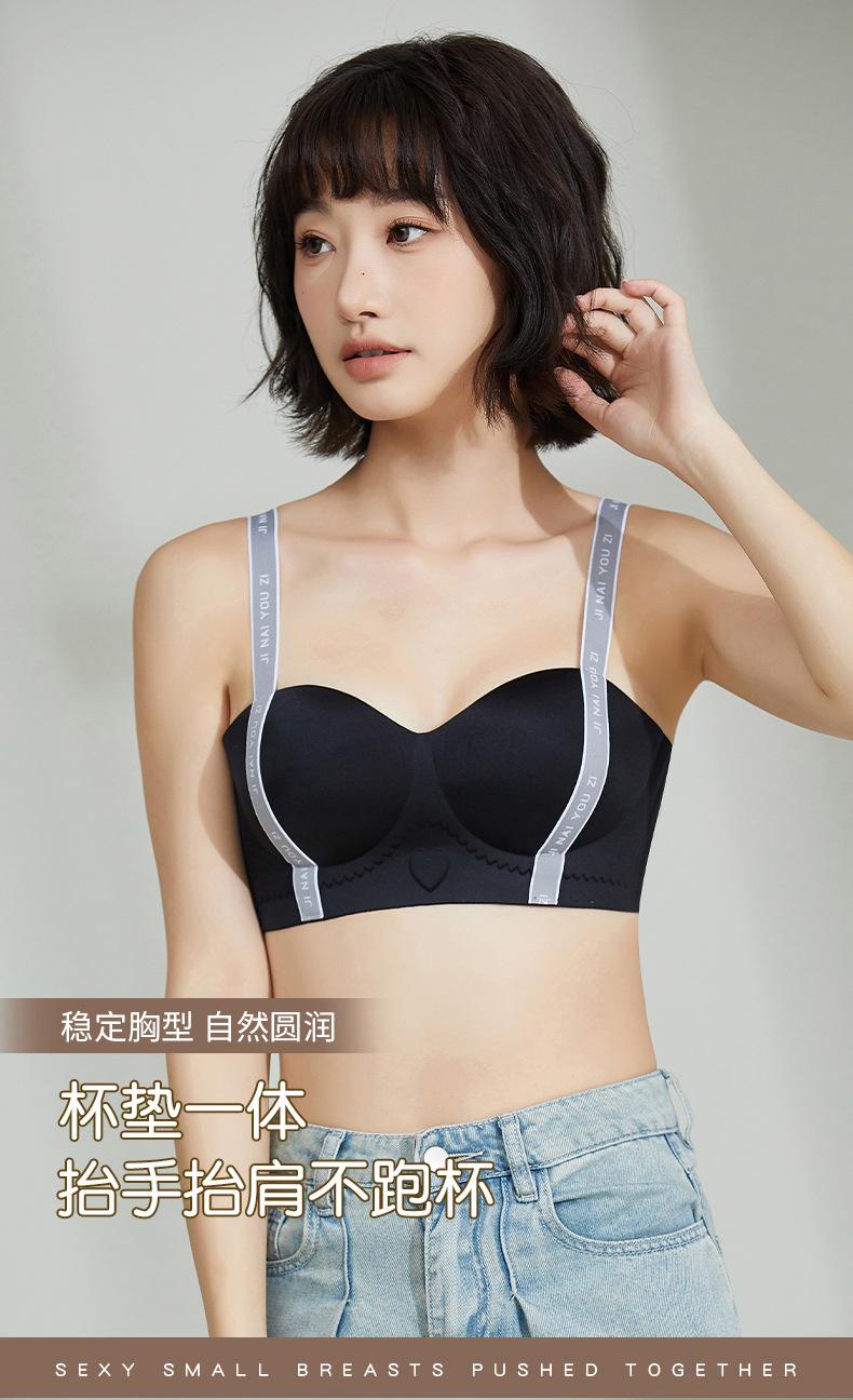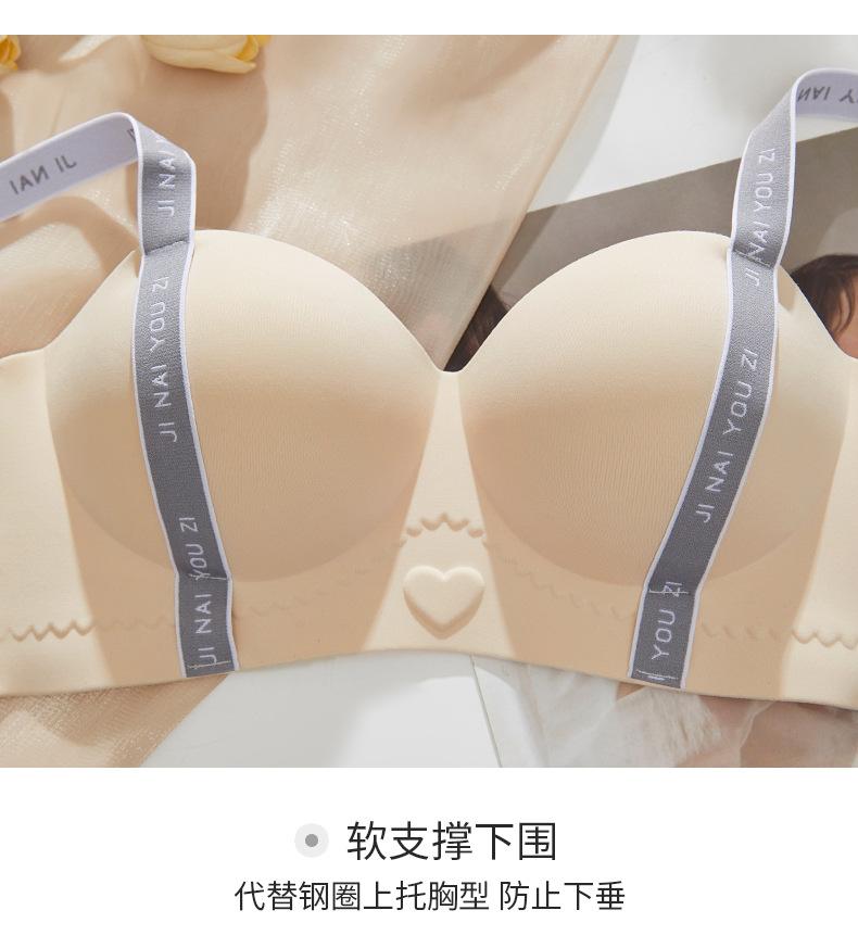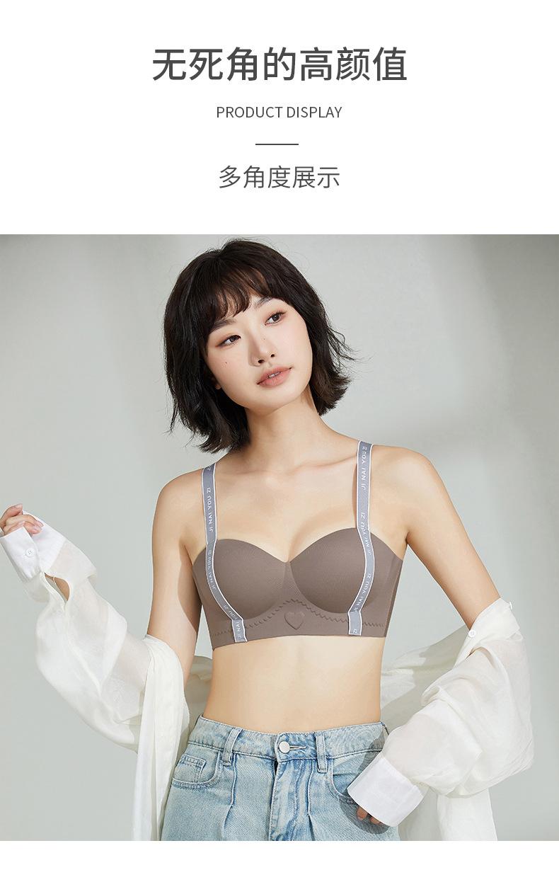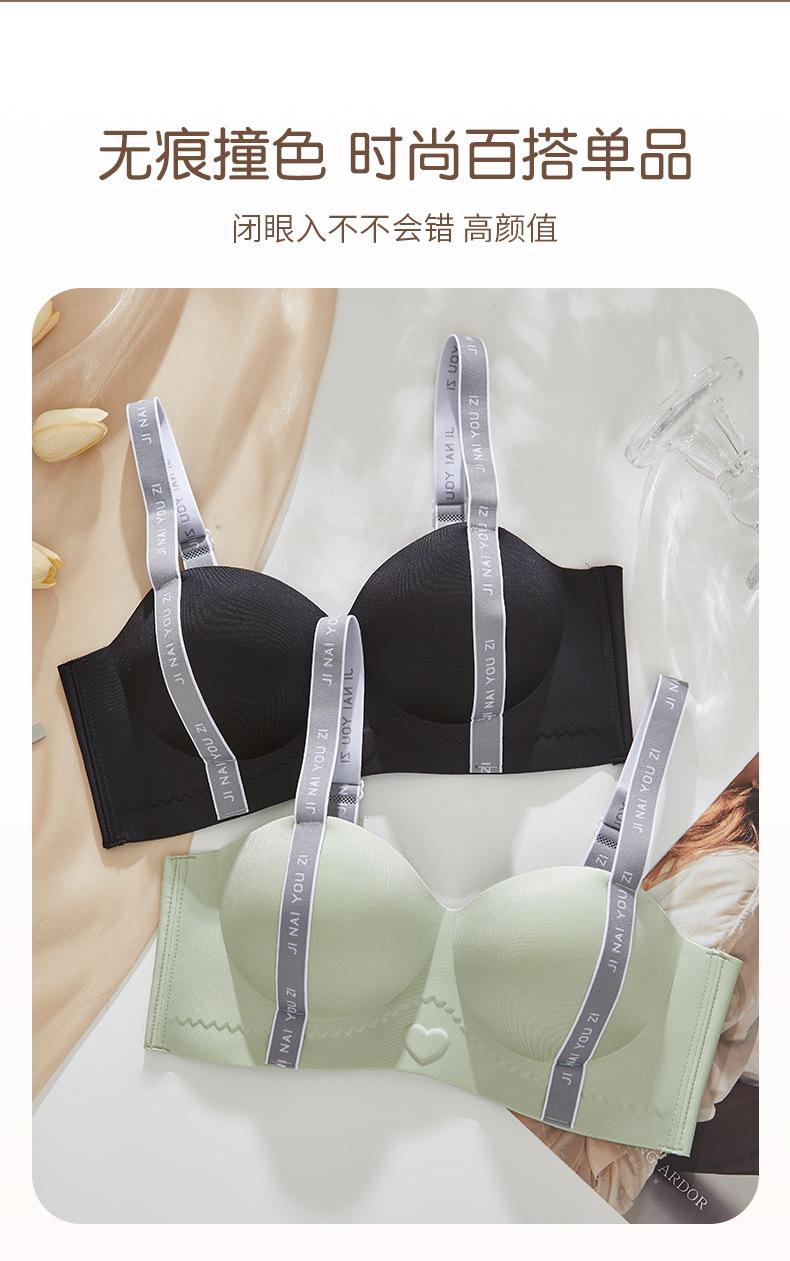 Xadrez, Sem Marcas, Sem Aro Alça de Ombro com Letras Meia Taça Lingerie para Mulheres com Seios Pequenos Franzida para Mostrar Costas Grandes e Bonitas Lingerie Sutiã Popular