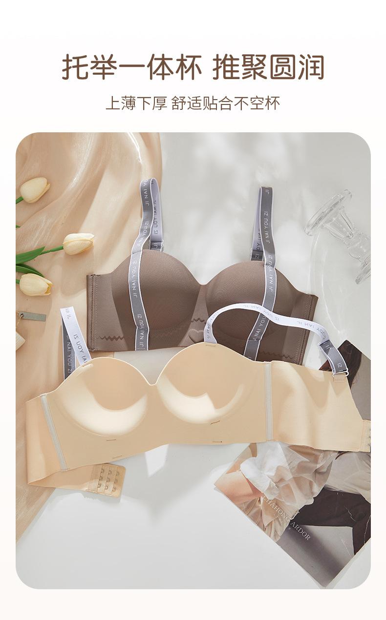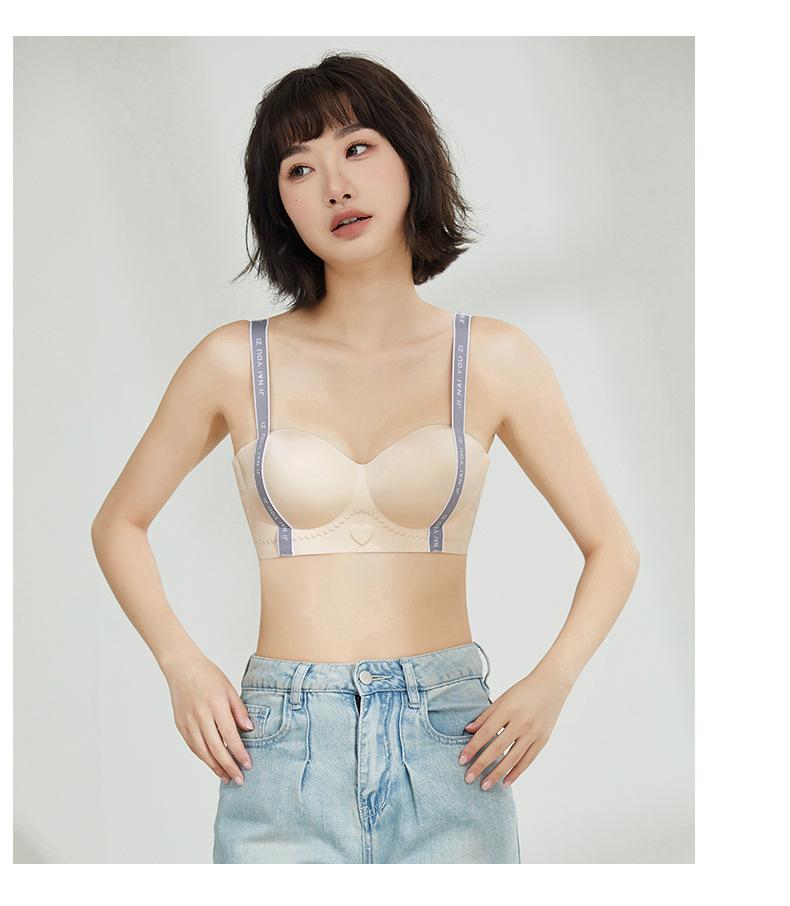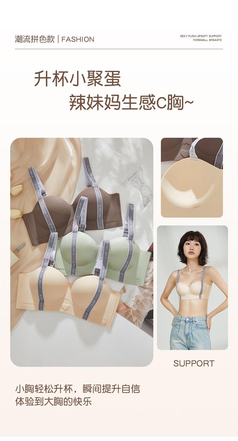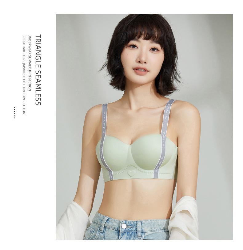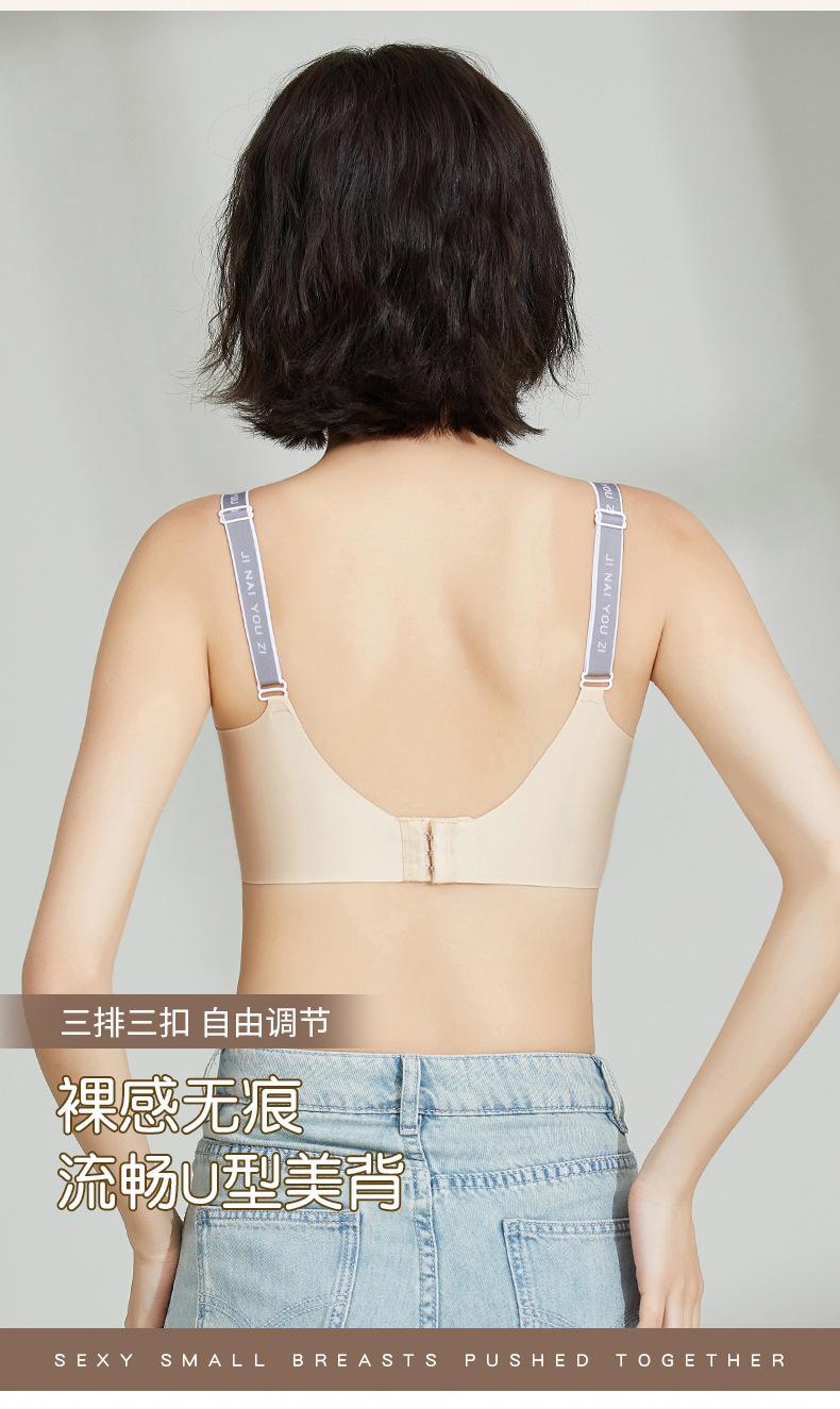Xadrez, Sem Marcas, Sem Aro Alça de Ombro com Letras Meia Taça Lingerie para Mulheres com Seios Pequenos Franzida para Mostrar Costas Grandes e Bonitas Lingerie Sutiã Popular