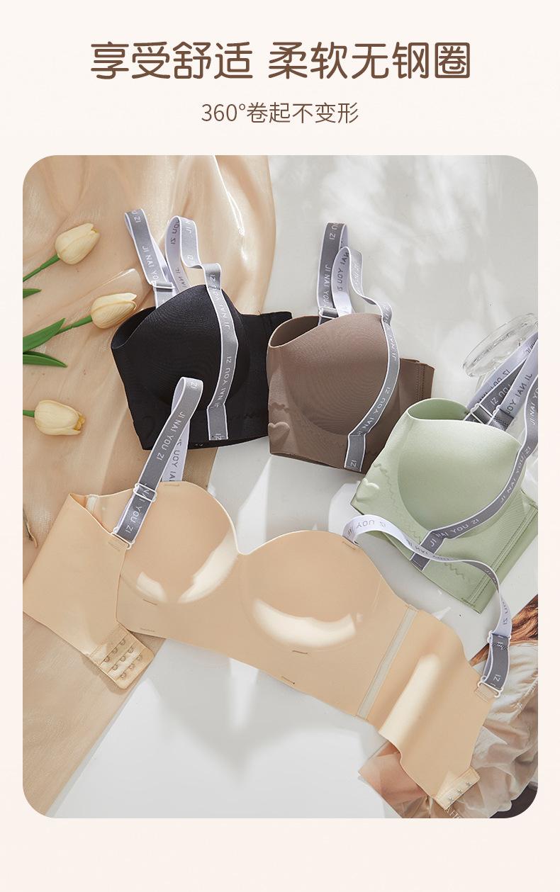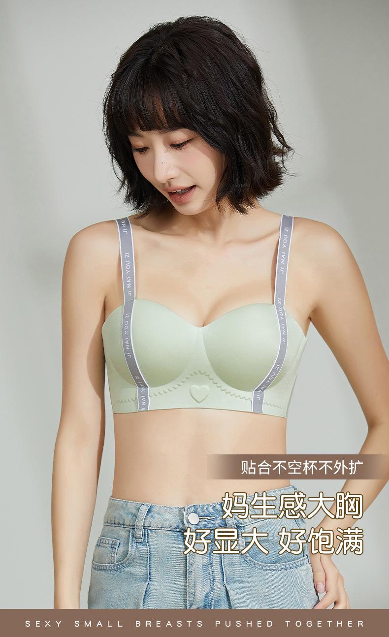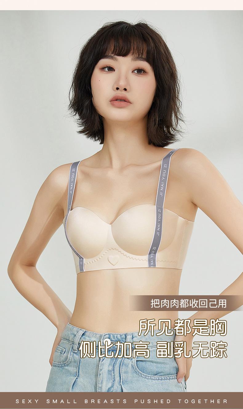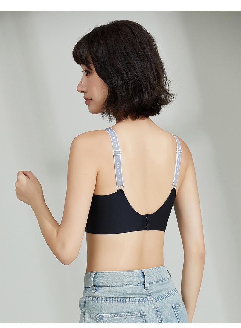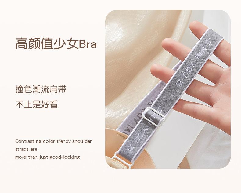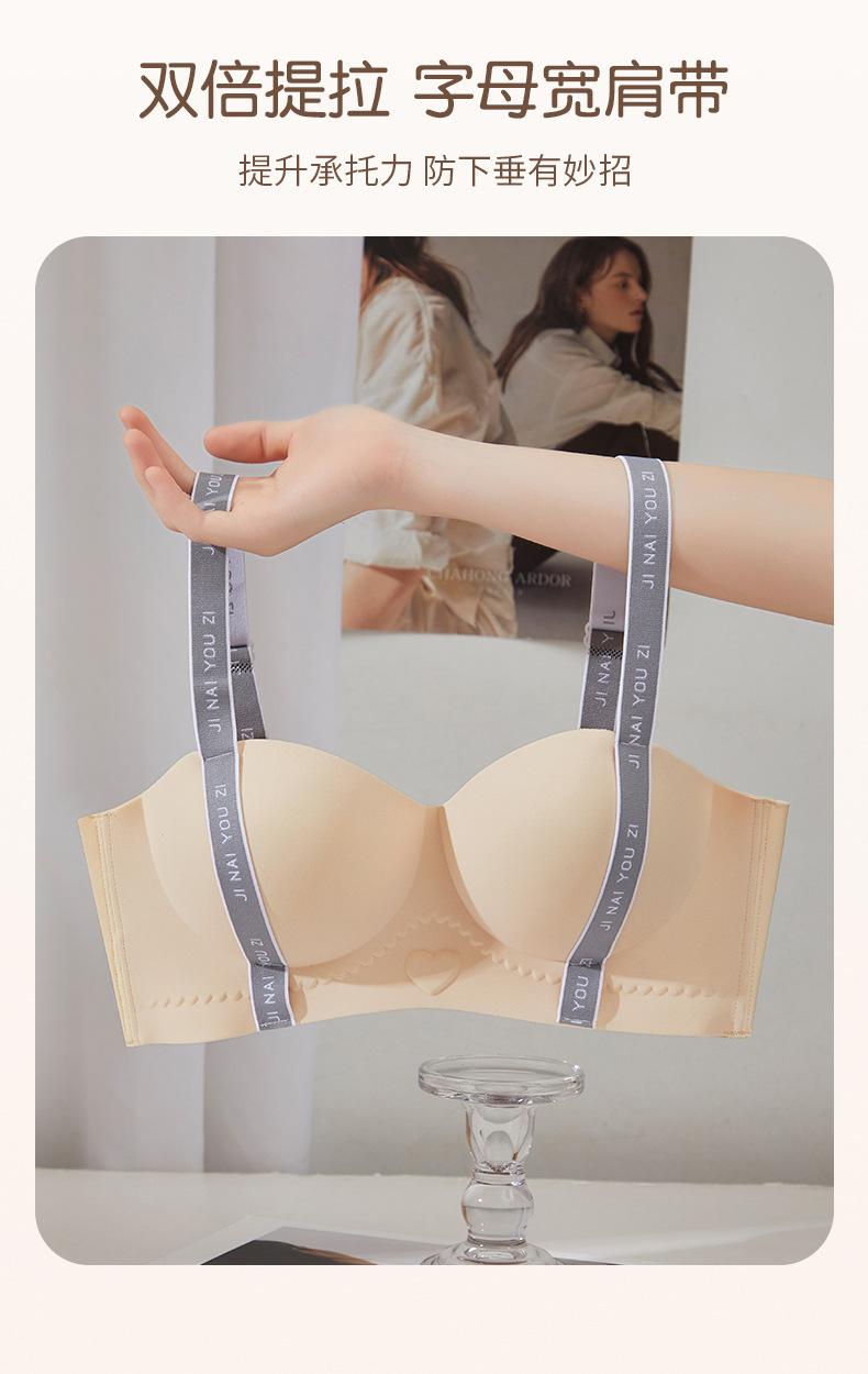 Xadrez, Sem Marcas, Sem Aro Alça de Ombro com Letras Meia Taça Lingerie para Mulheres com Seios Pequenos Franzida para Mostrar Costas Grandes e Bonitas Lingerie Sutiã Popular