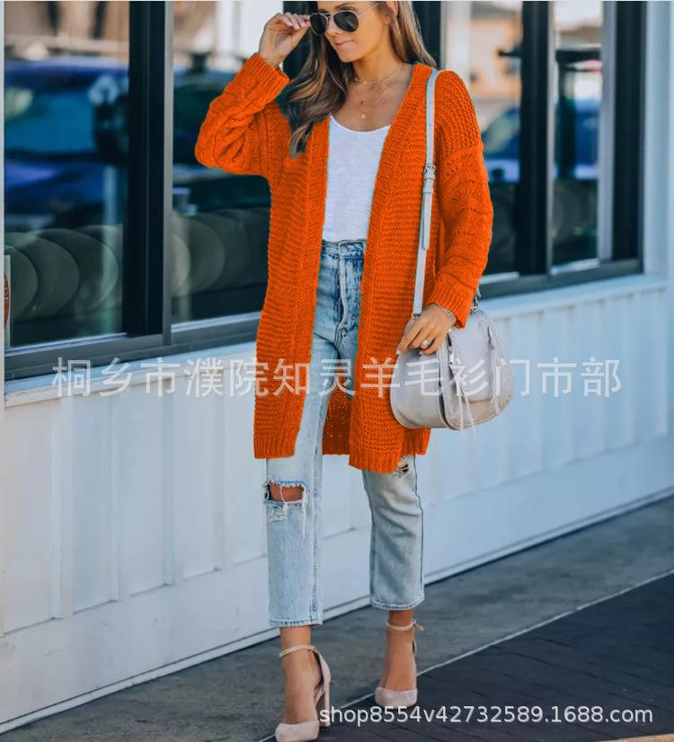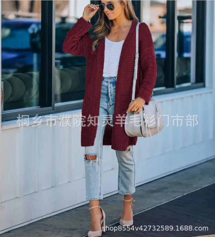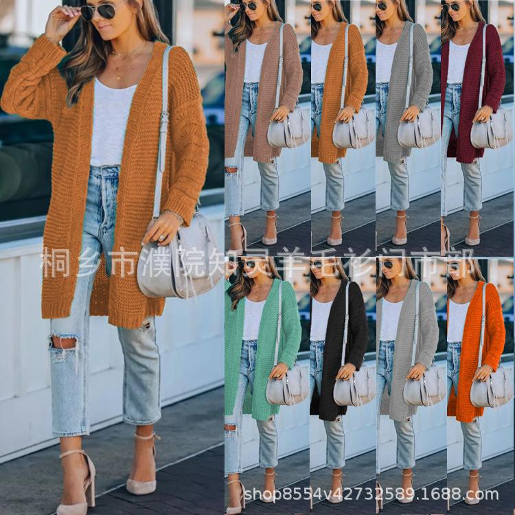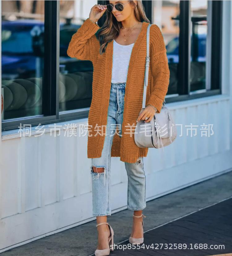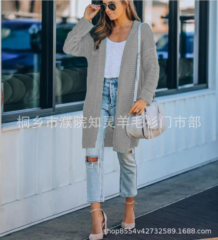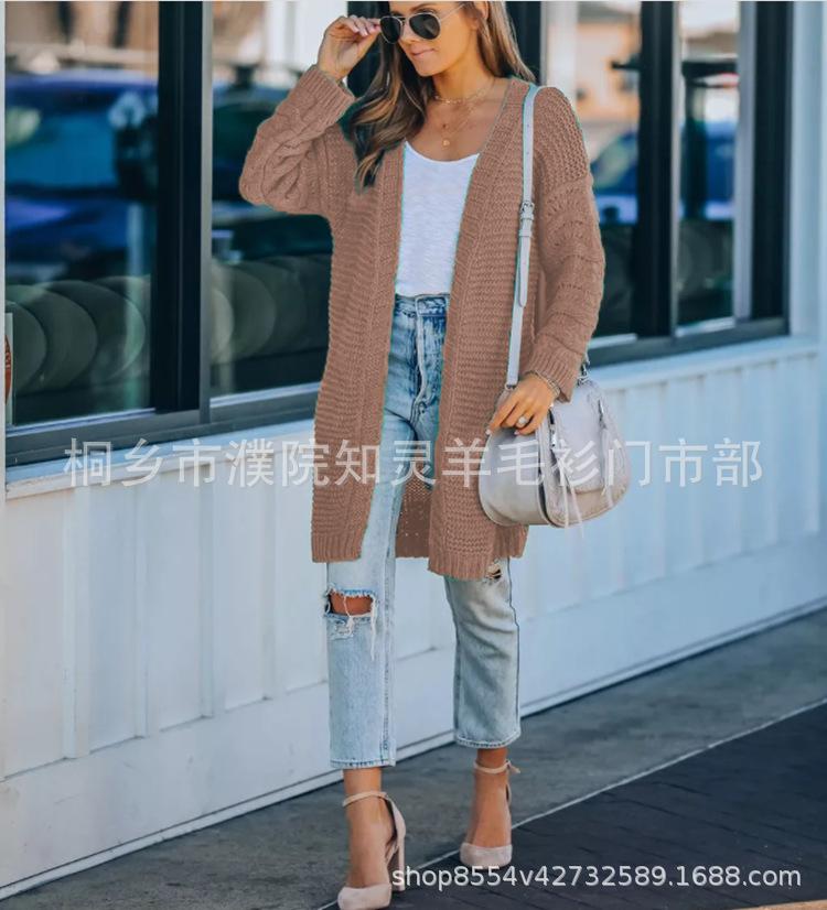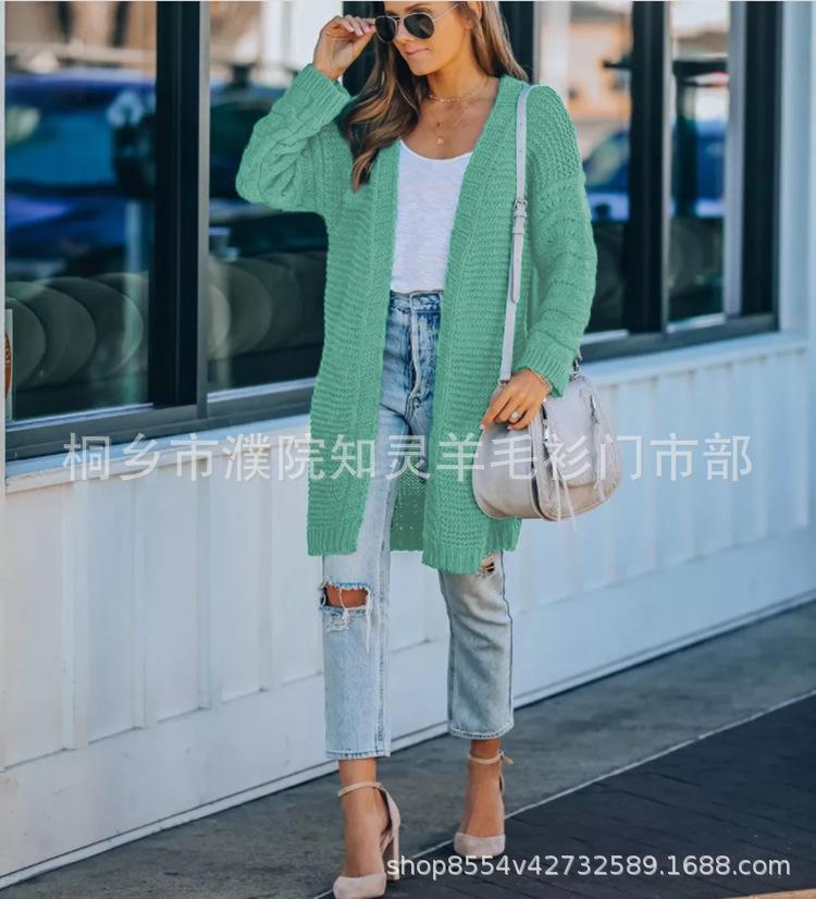 Cardigan 2025 Novo Outono e Inverno Cor Pura Solto Manga Longa Jaqueta Tricotada Tamanho Grande Amazon Suéter Feminino Europeu e Americano para Mulheres
