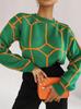 Roupa Feminina de Exportação Europeia e Americana 2025 Pulôver Gola Redonda Tricotado Figura Geométrica Aliexpress Amazon Estação Independente Suéter