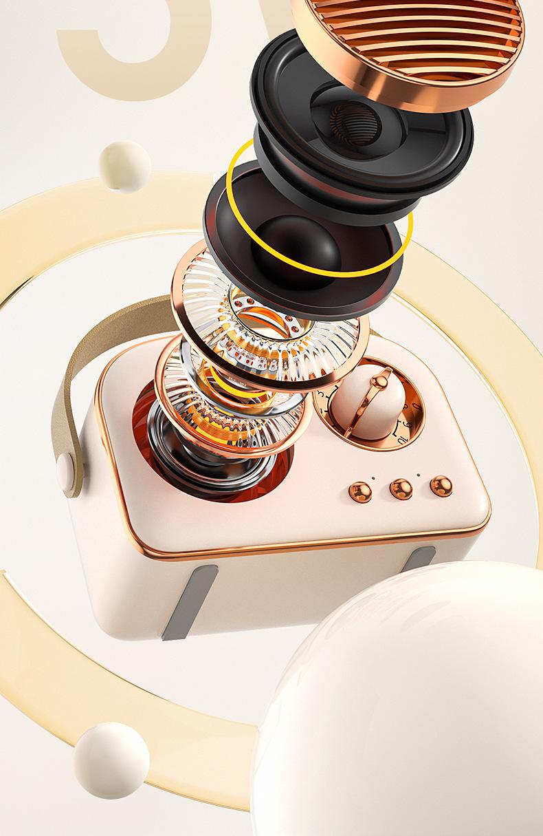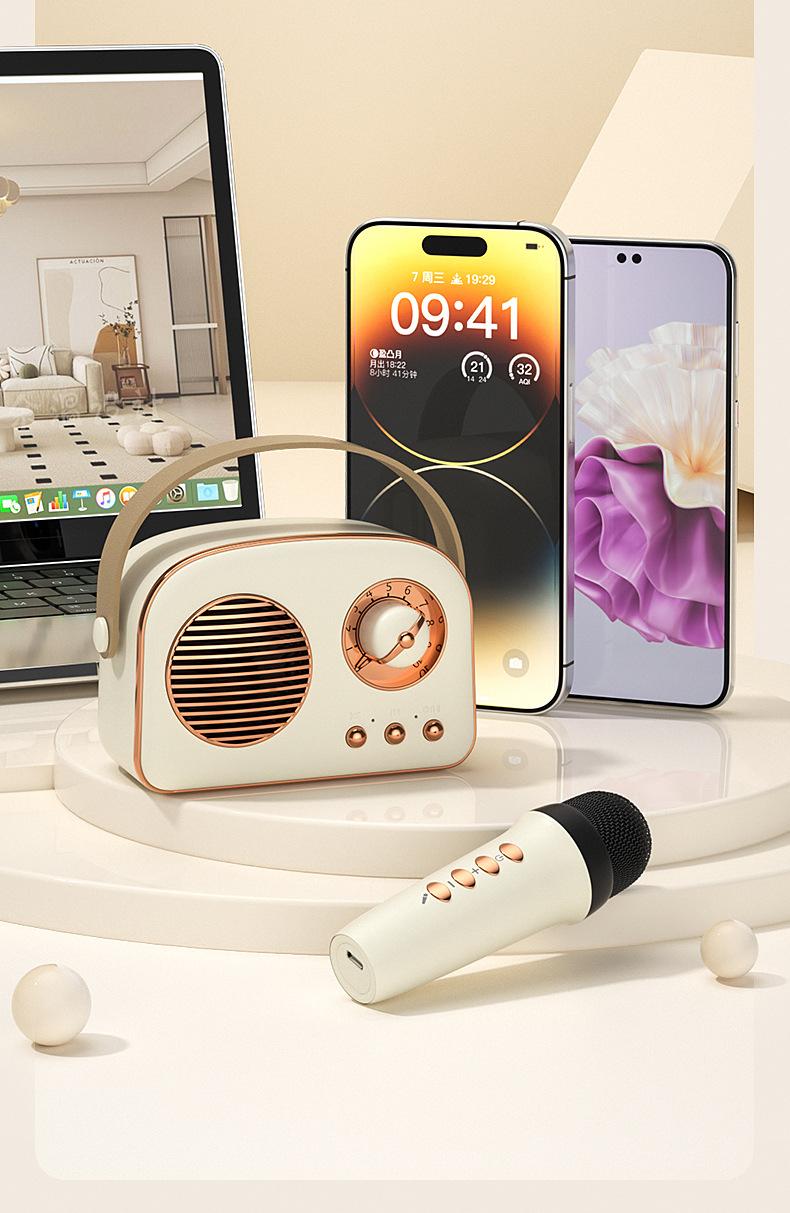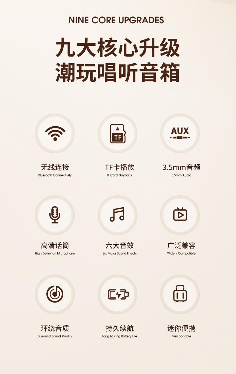 Funções do alto-falante: K song, Bluetooth, cartão TF, pen drive USB, áudio AUX, TWS, FM, chamada mãos-livres