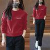 Conjunto de Roupa Esportiva Espessa Forrada com Lã para Mulheres, Moda Elegante de Outono e Inverno em Estilo Coreano, Moletom Elegante que Rejuvenesce