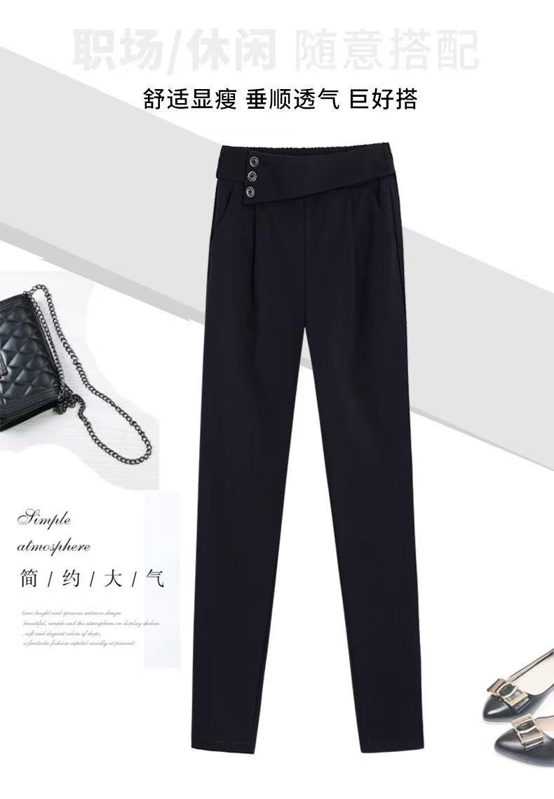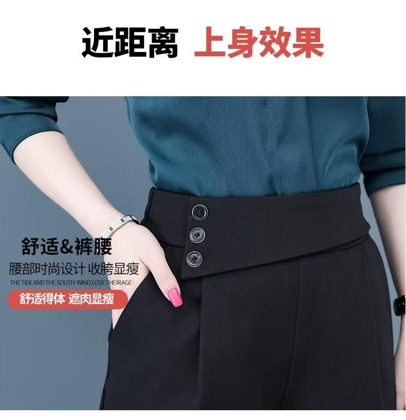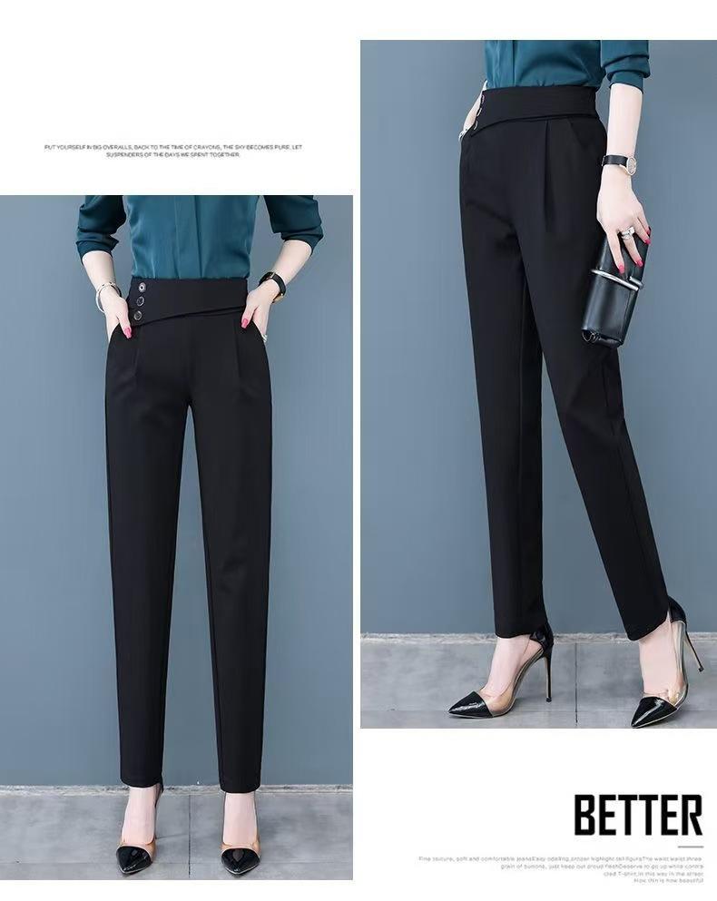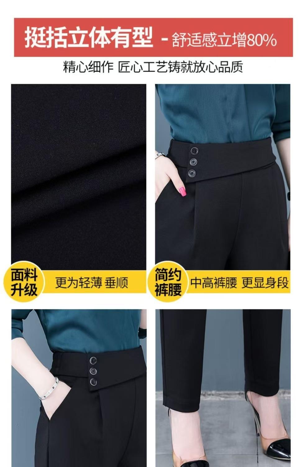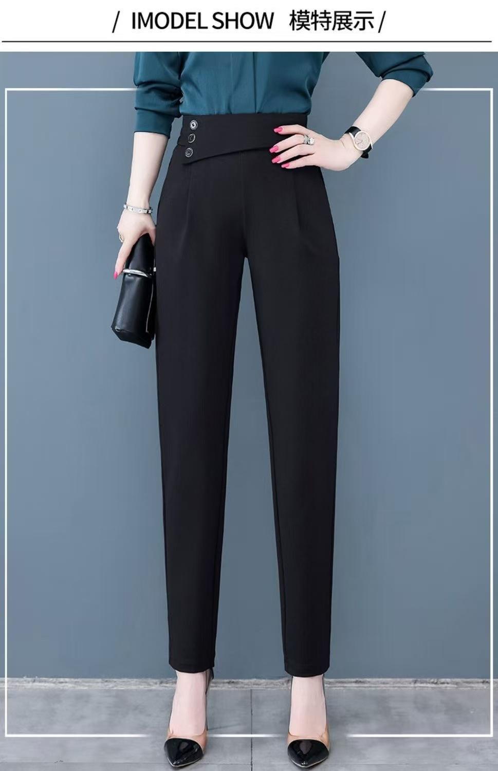 Calças de Alfaiataria Femininas de Verão Modeladoras de Cintura Alta Pretas, Calças Harem Finas Versáteis, Calças Curtas Soltas para Mulheres