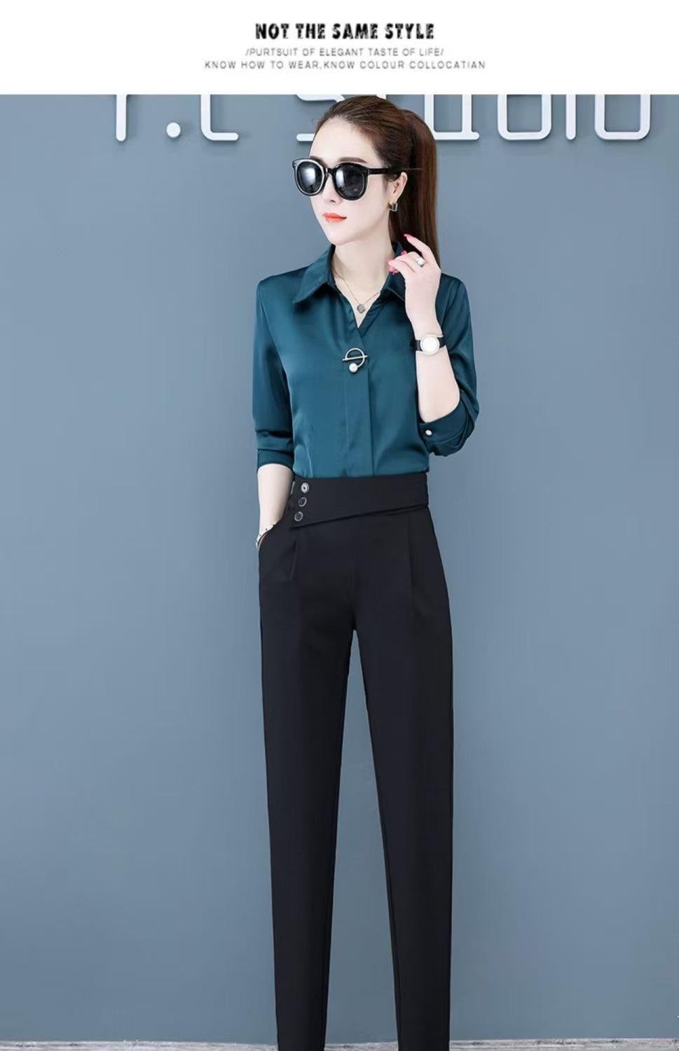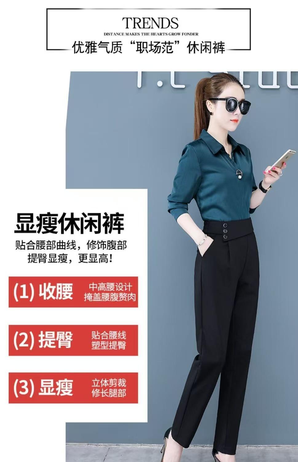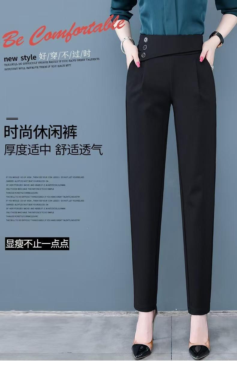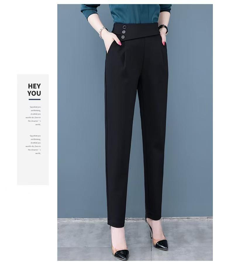 Calças de Alfaiataria Femininas de Verão Modeladoras de Cintura Alta Pretas, Calças Harem Finas Versáteis, Calças Curtas Soltas para Mulheres