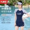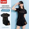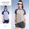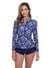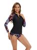 [Maiô Esportivo Novo Europeu e Americano Feminino] Estampado Multicolorido Manga Longa Zíper Cordão Shorts Fato Conservador Maiô