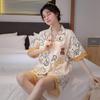 Pijama de Verão Nova Feminina Espinha de Peixe Inclinada Cardigan Seda Gelo Manga Curta Shorts Calças Terno de Três Peças Popular na Internet Roupa de Casa