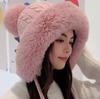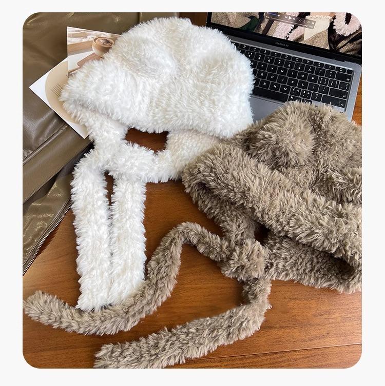 Chapéu de Pelúcia para Mulheres, Inverno Bonito Design de Urso com Aba Larga, Chapéu Quente de Pelúcia Sintética de Coelho para Proteção de Orelhas para Exterior