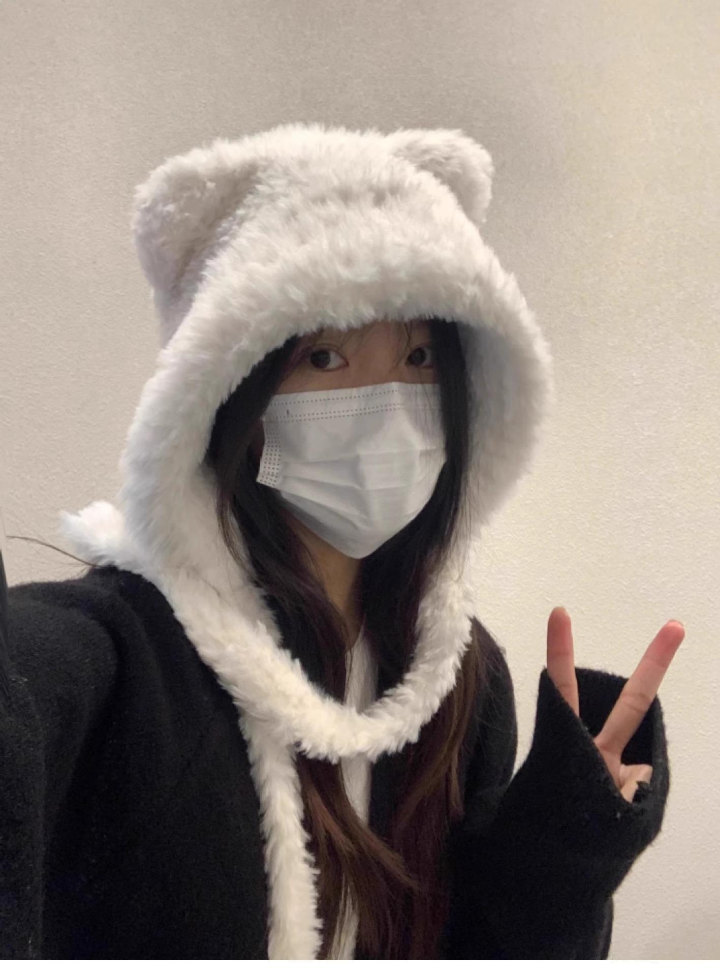 Plush white bag hat, Plush card color bag hat, Plush black bag cap, Plush brown bag hat, Swallowtail bear lace...