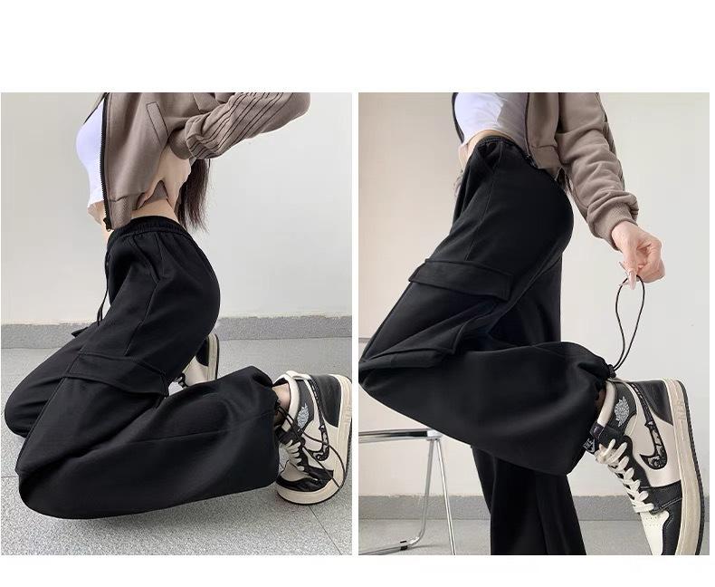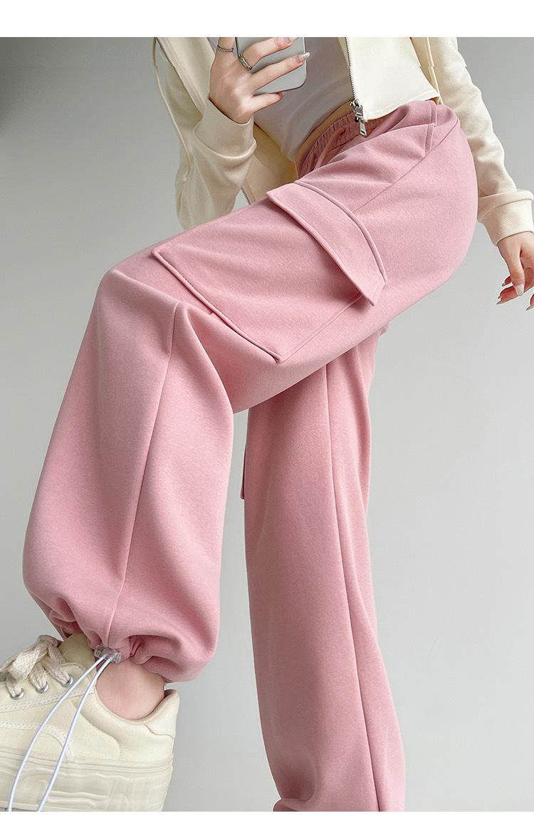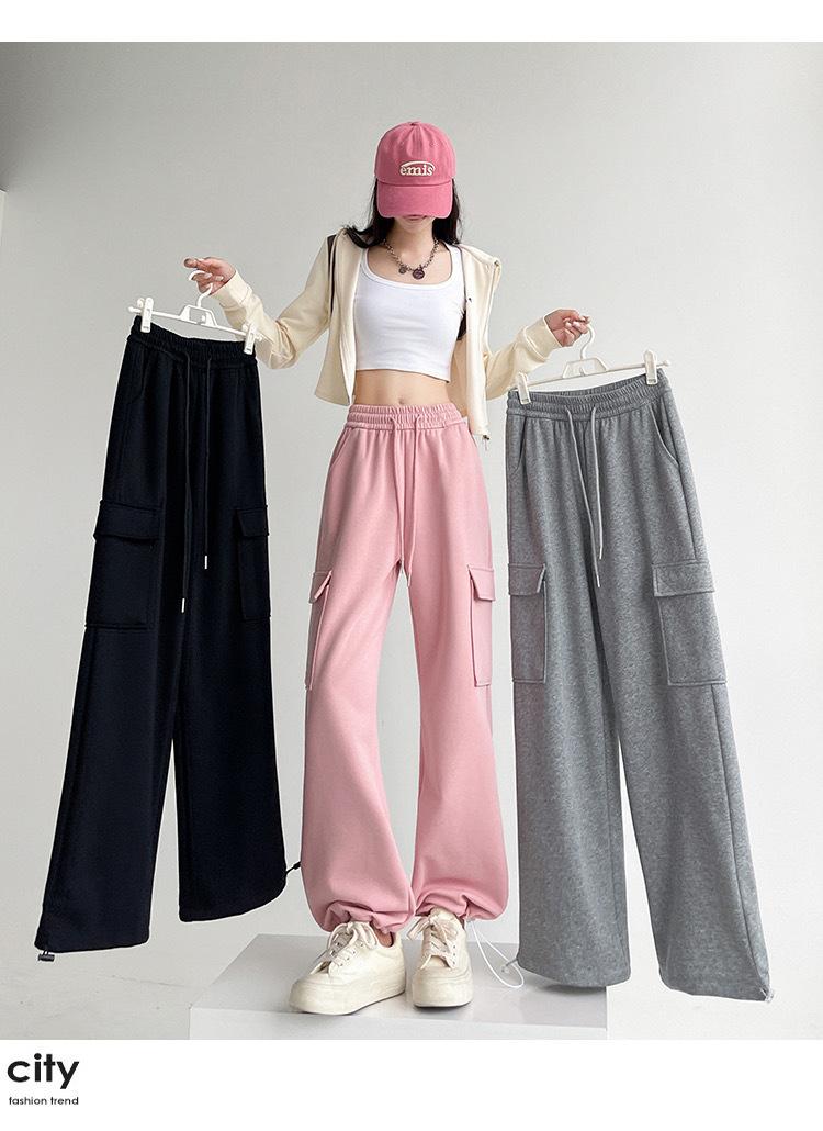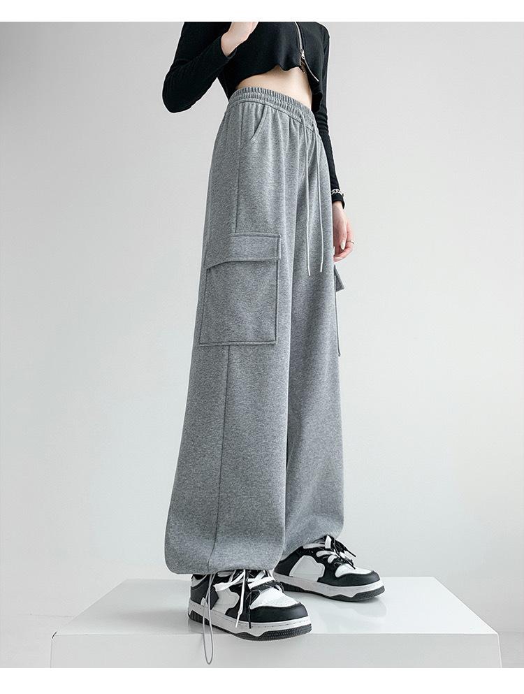 Jardineira Feminina Japonesa e Coreana Solta Casual Calça Esportiva 2023 Outono e Inverno Nova Cintura Alta Slim Cordão Perna Larga