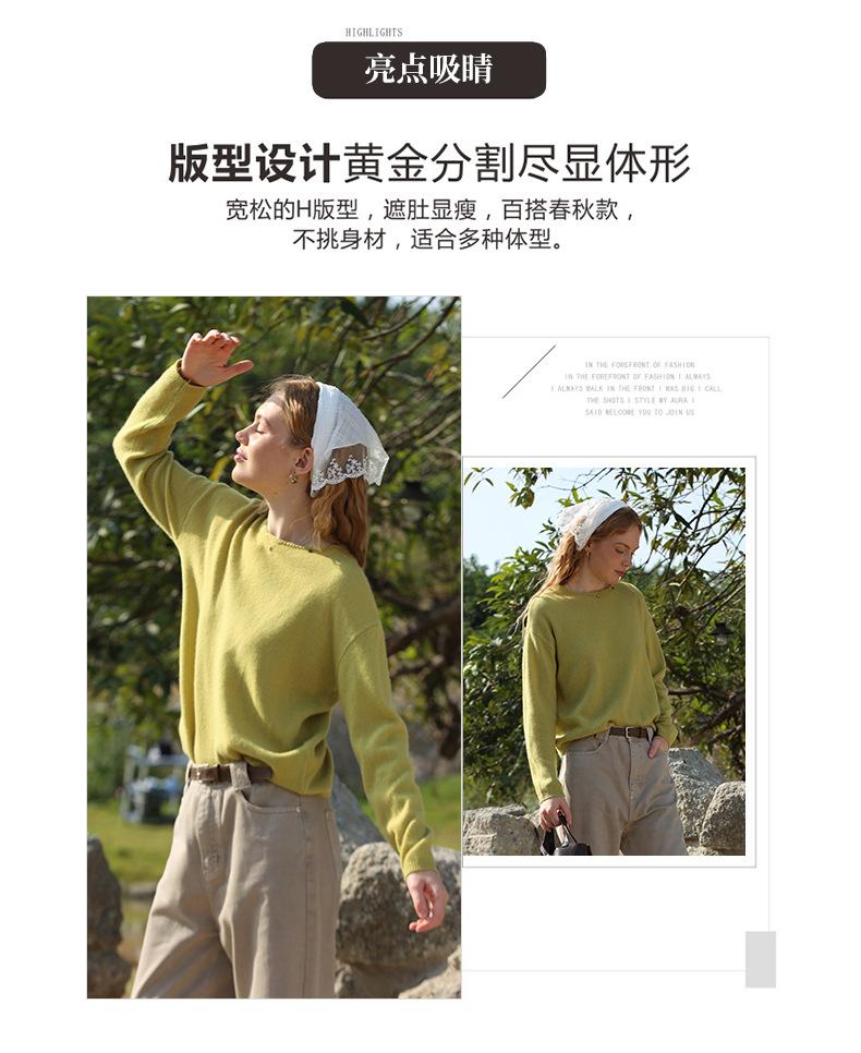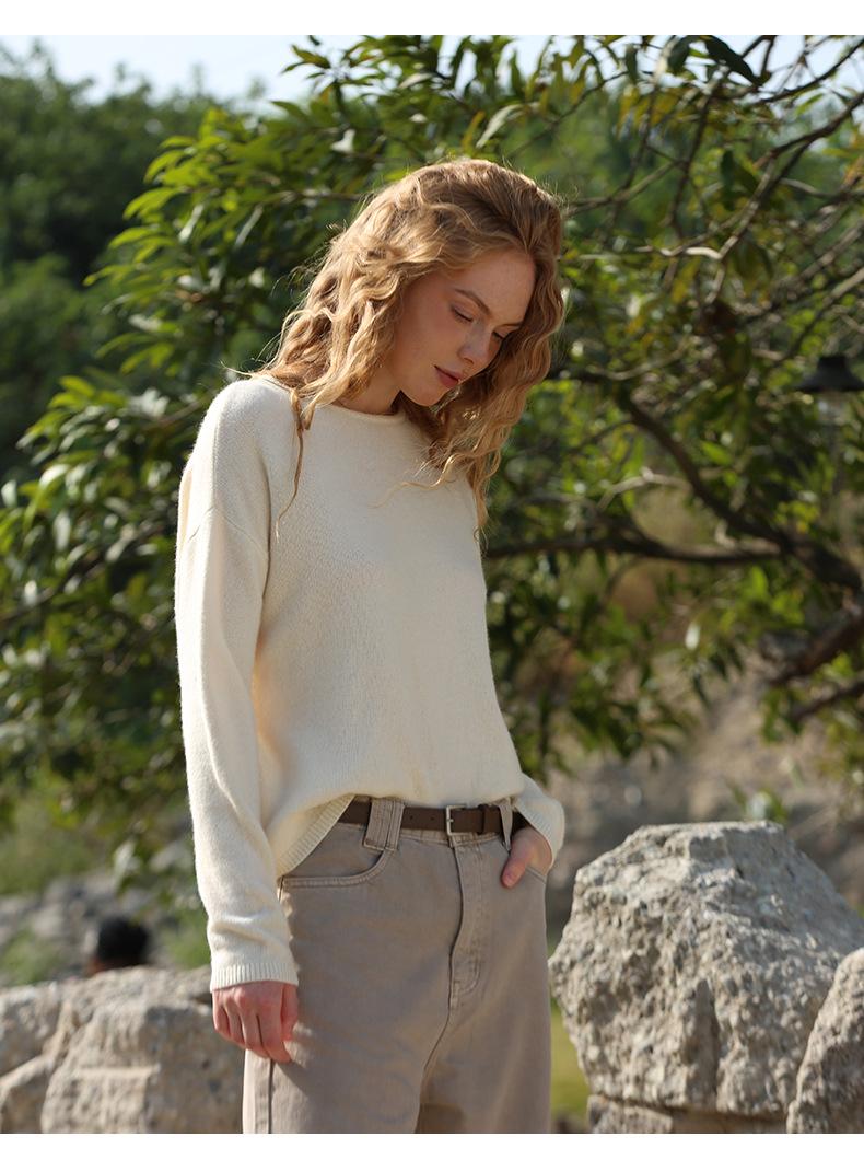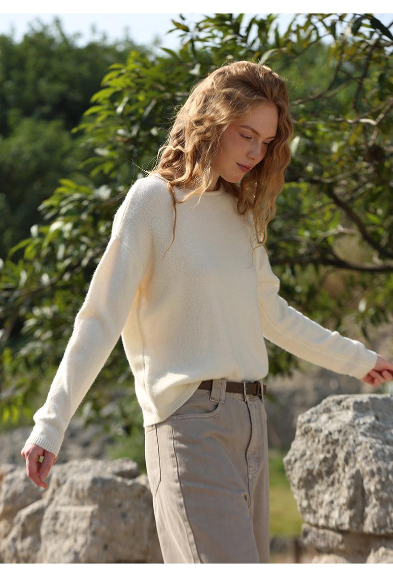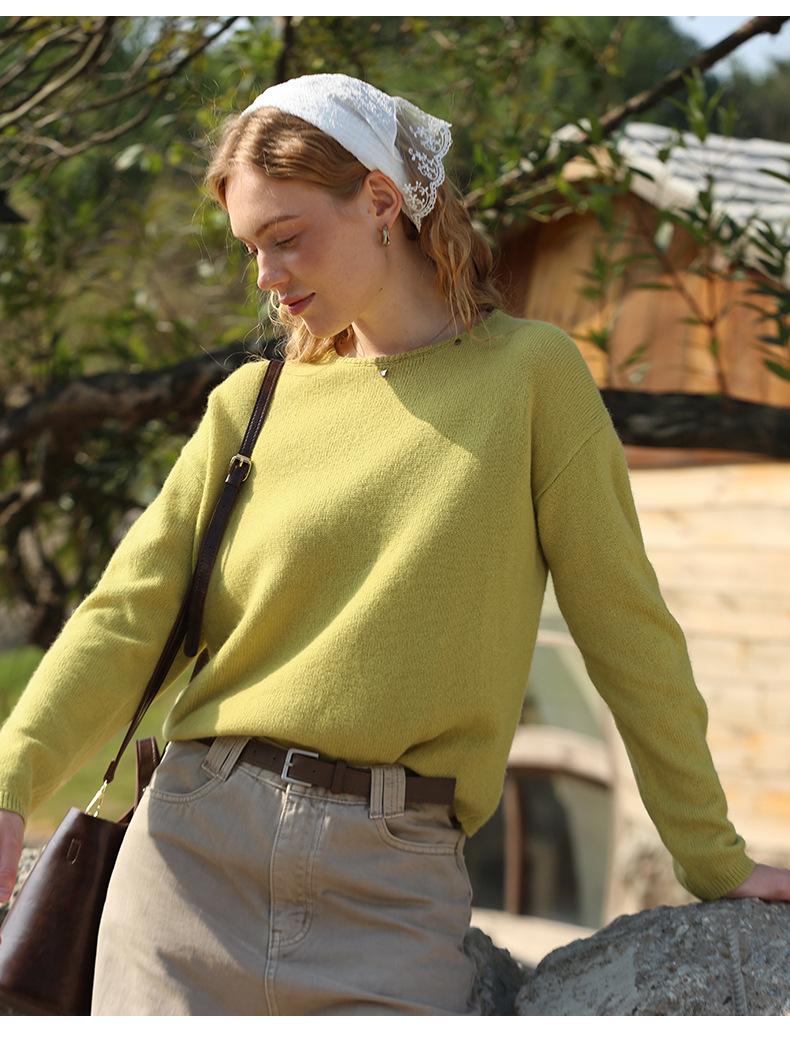 Primavera Novo Suéter Gola Redonda 100% Lã Pura Macio e Quente Suéter Pulôver de Manga Longa Look Solto Emagrecedor Top Roupas Femininas