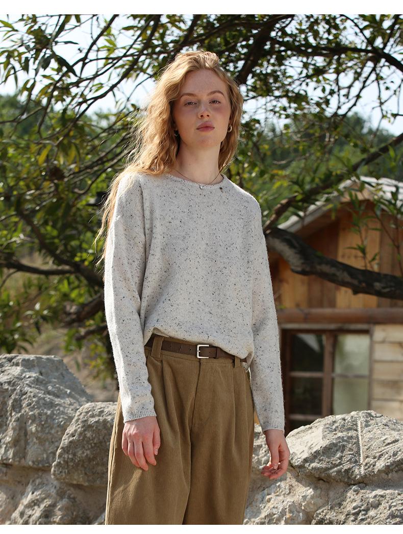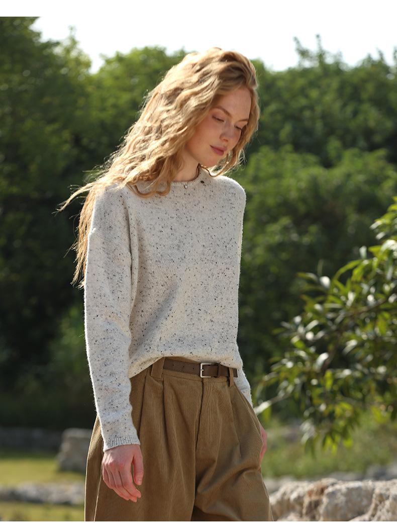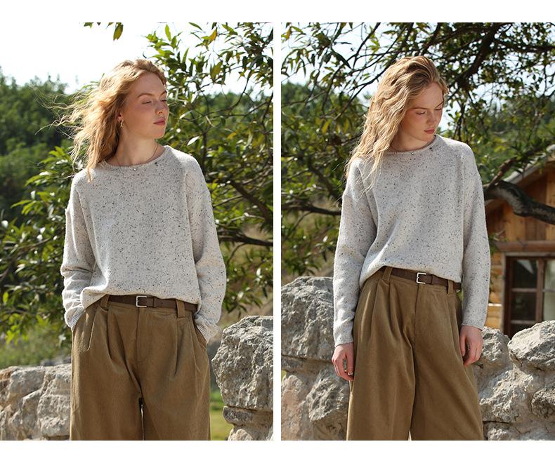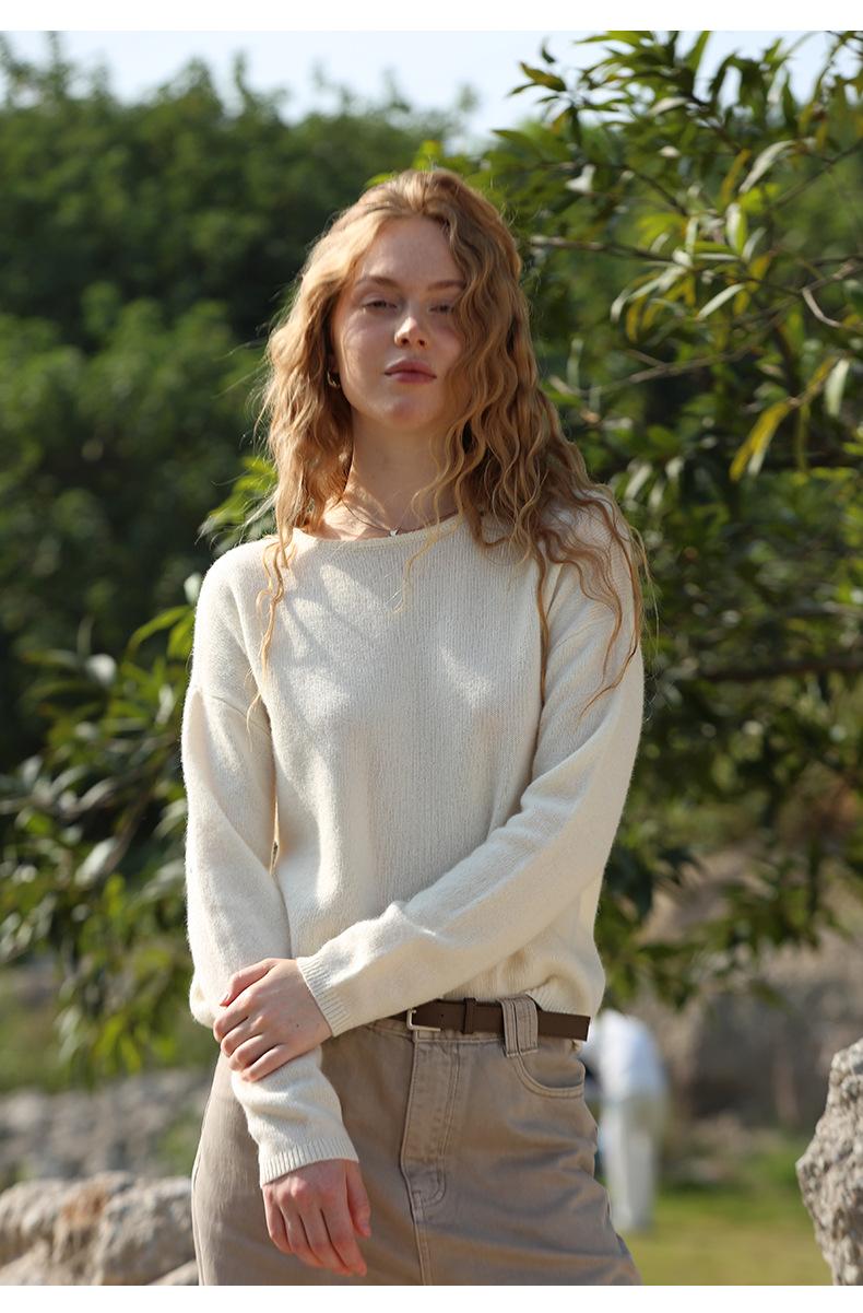 Primavera Novo Suéter Gola Redonda 100% Lã Pura Macio e Quente Suéter Pulôver de Manga Longa Look Solto Emagrecedor Top Roupas Femininas